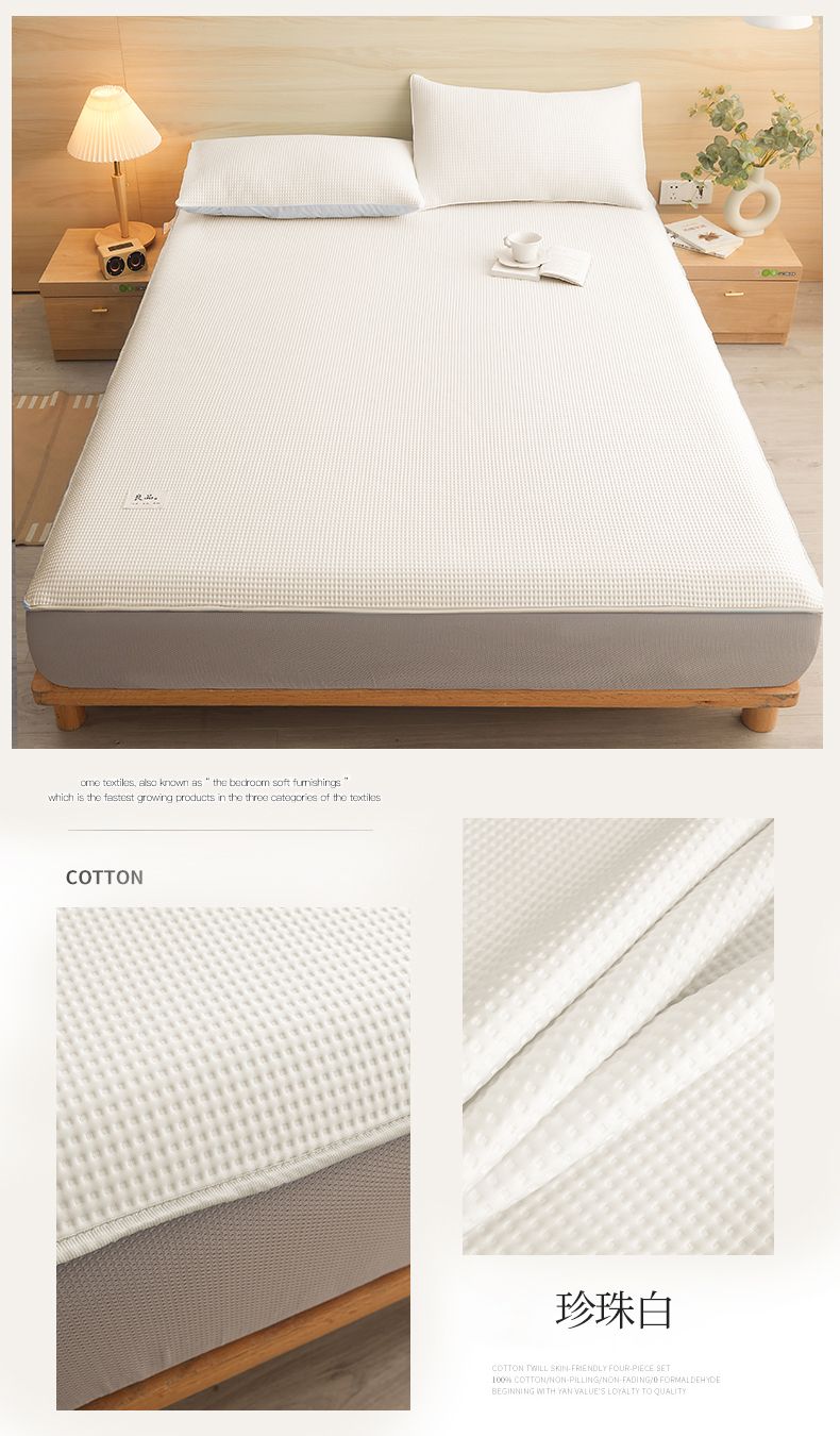 恒爱家纺 2023新款华夫格凉感床笠 珍珠白