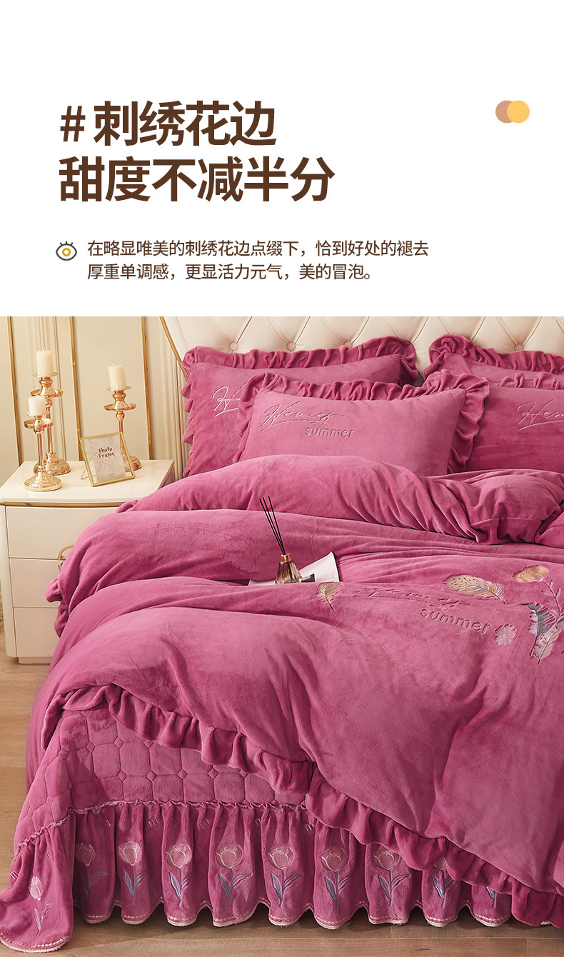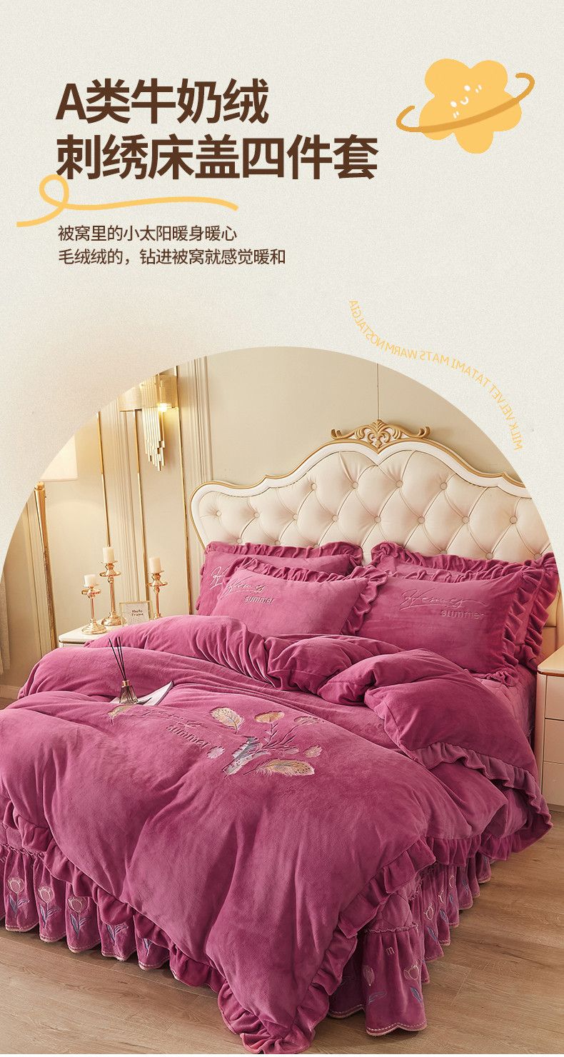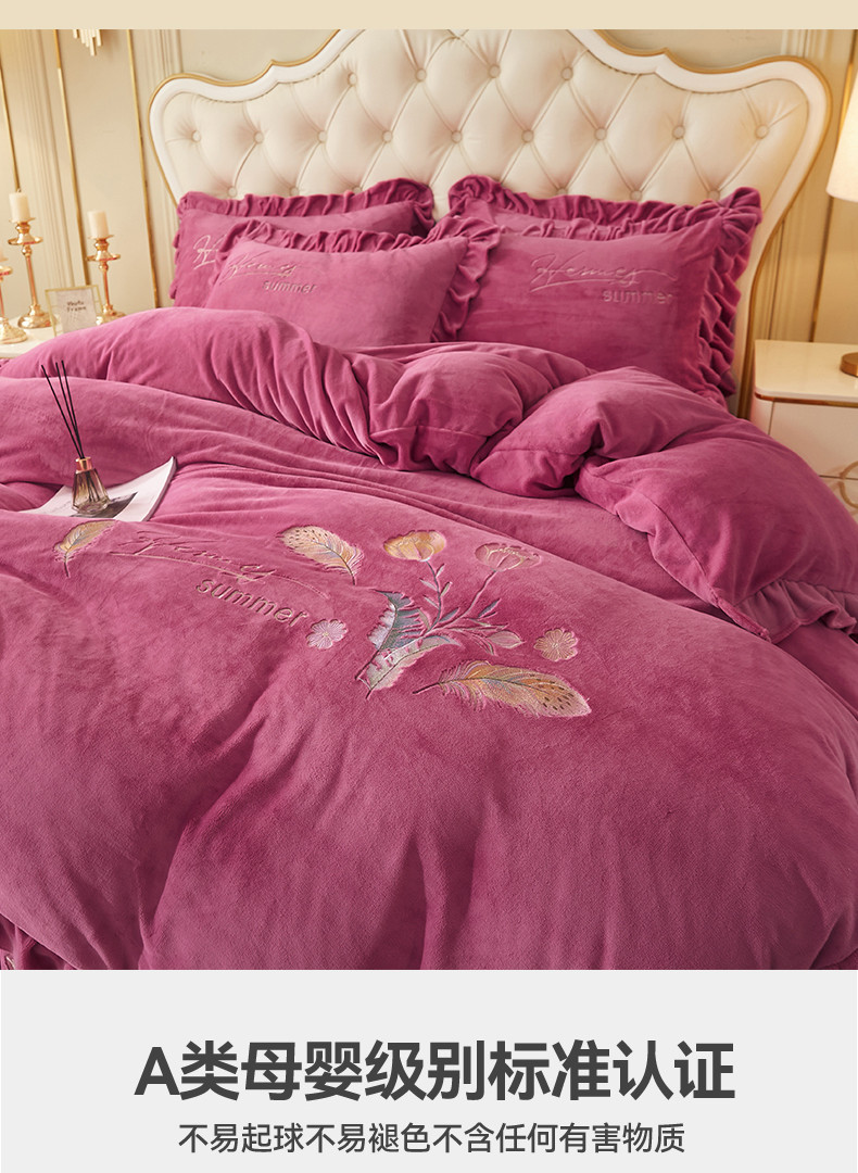 当前位置: 91家纺网 > 商品网购 > 床品套件 > 四件套 > 牛奶绒四件套 > 恒爱 2023新款A类牛奶绒羽毛床盖四件套 羽毛-玫瑰红