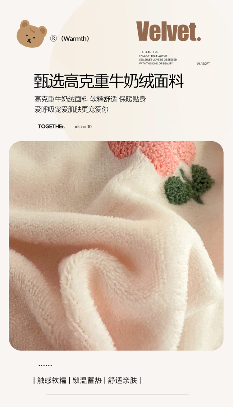 (总)寐居家纺 2025新款A类牛奶绒毛巾绣床盖,组合,格纹萌犬,红果果,萌兔有约,年年有鱼,甜心小骑,星伴小象