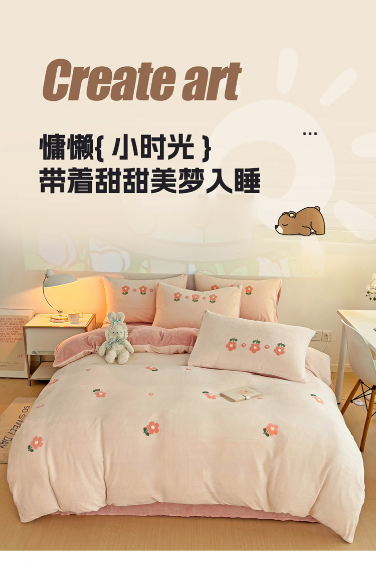(总)寐居家纺 2025新款贴布绣高克重牛奶绒四件套,安吉拉喵,查理狗,粉糯kitty,皮皮布布