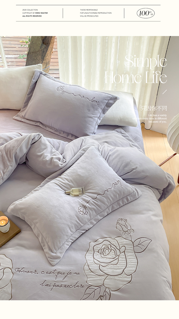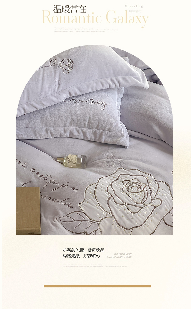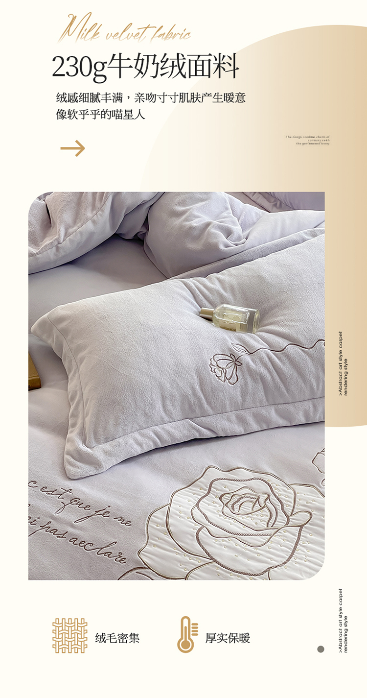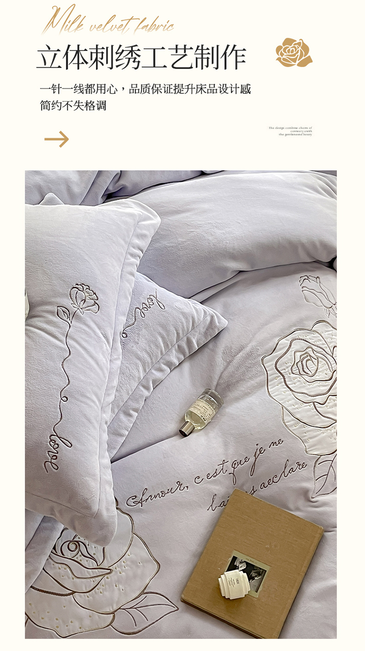 商品名称:名品优仓 2023新款高克重230g牛奶绒绣花温妮莎系列四件套 风铃紫