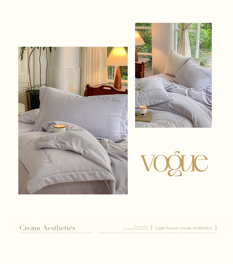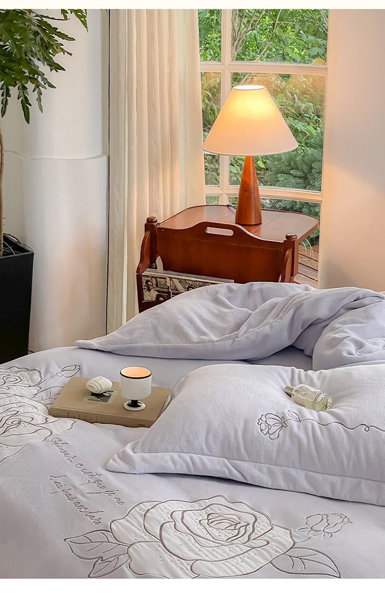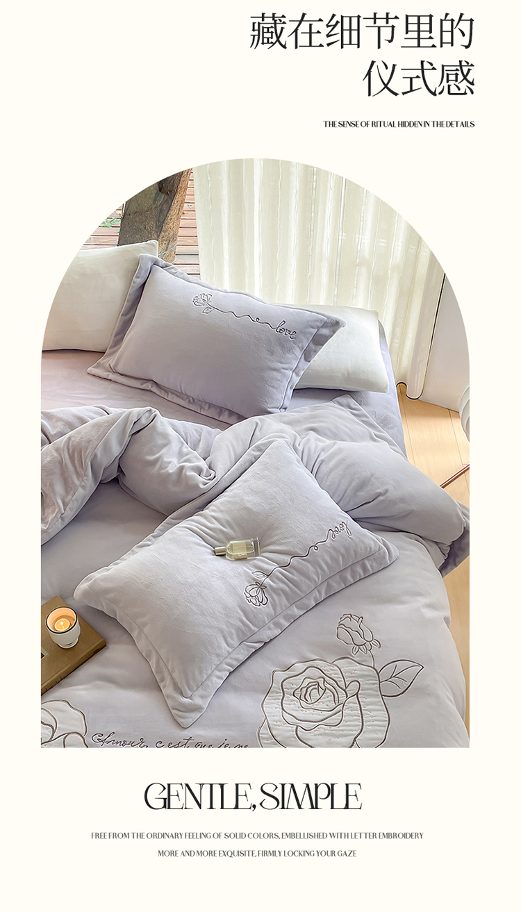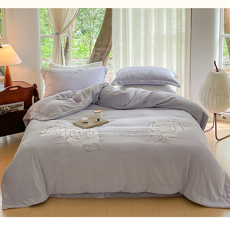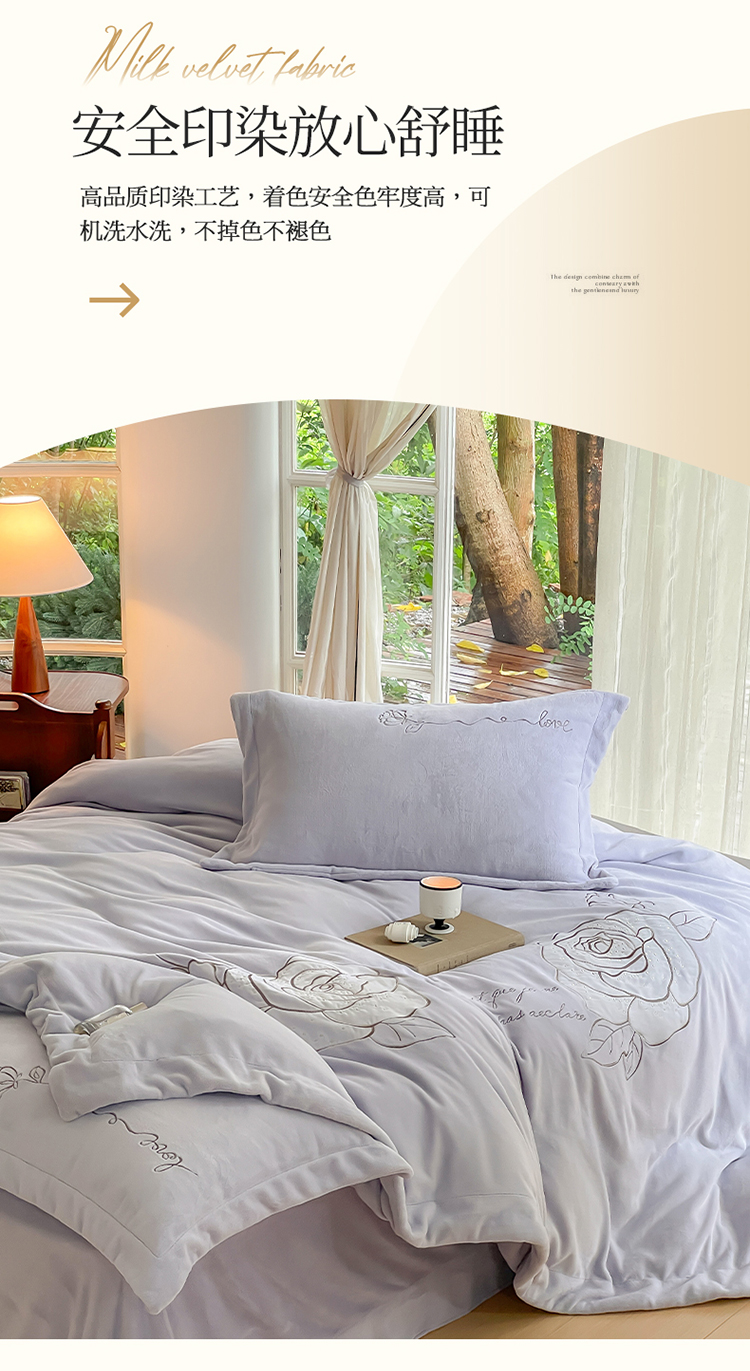 商品名称:名品优仓 2023新款高克重230g牛奶绒绣花温妮莎系列四件套 风铃紫