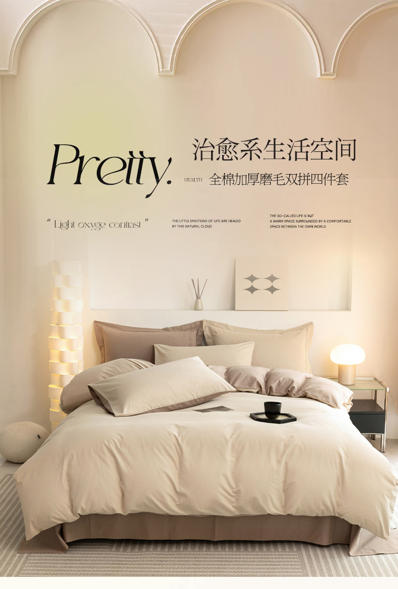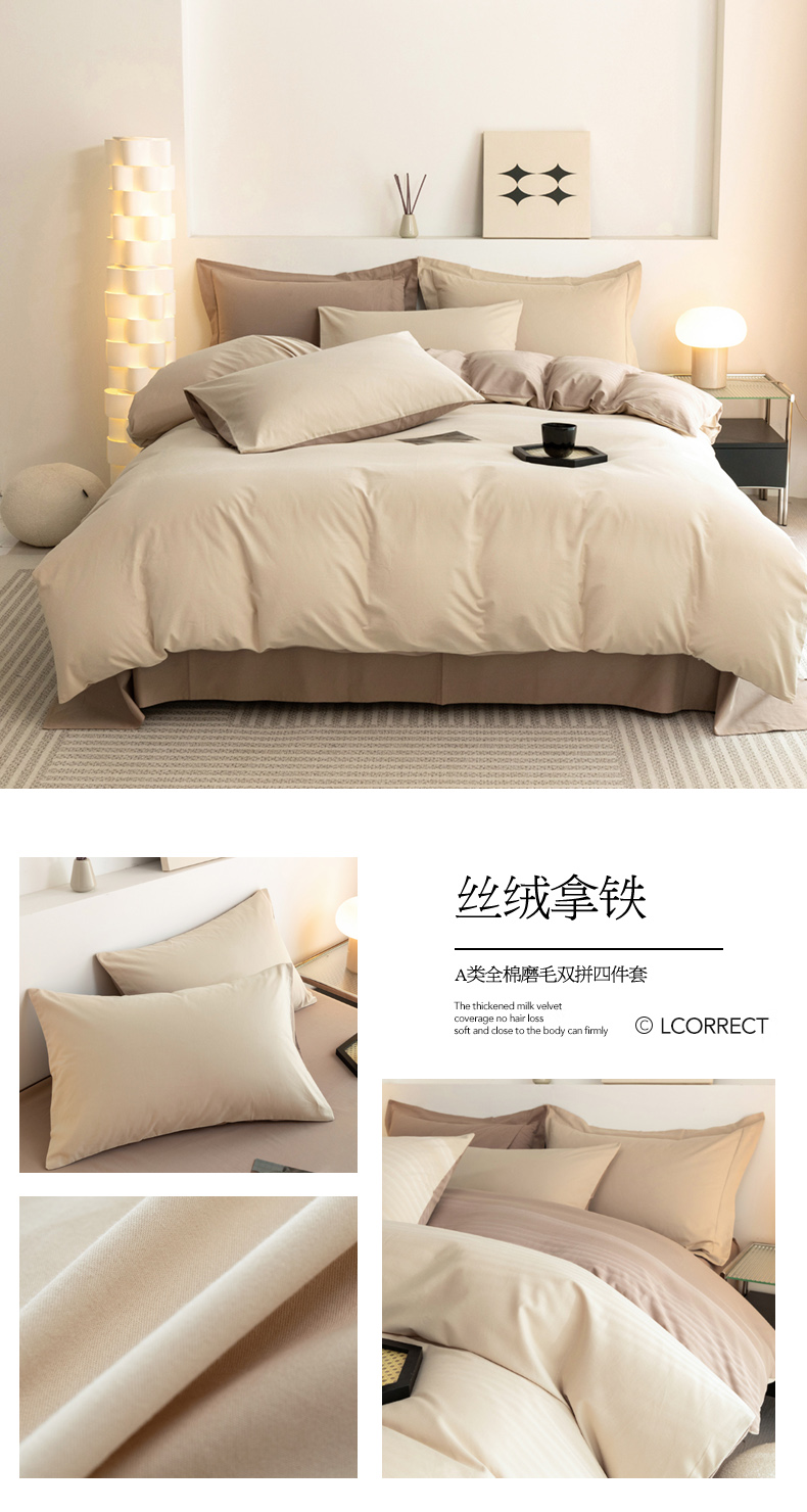 寐居家纺 2023新款全棉磨毛纯色四套件 丝绒拿铁