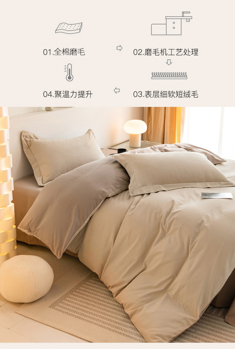 商品名称:寐居家纺 2023新款全棉磨毛纯色四套件 丝绒拿铁