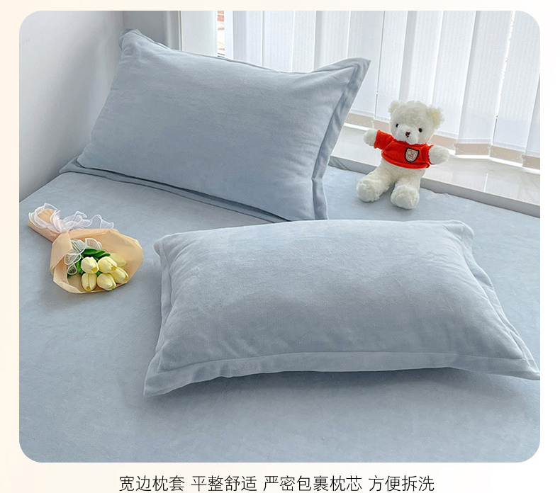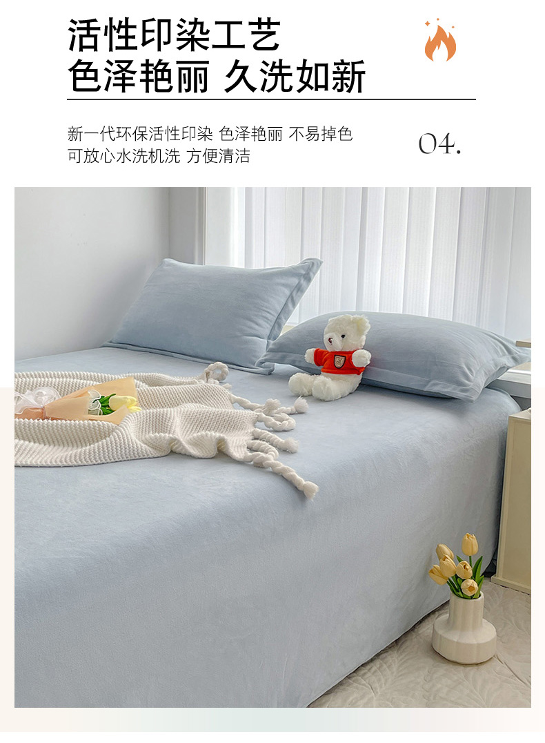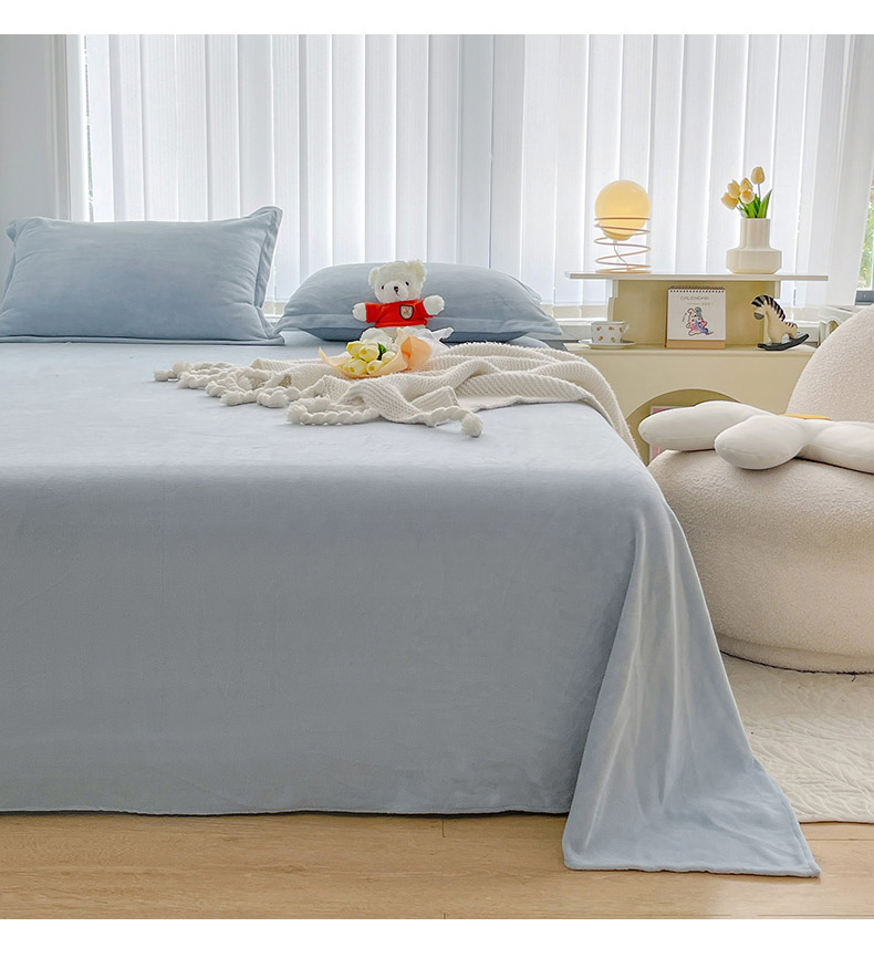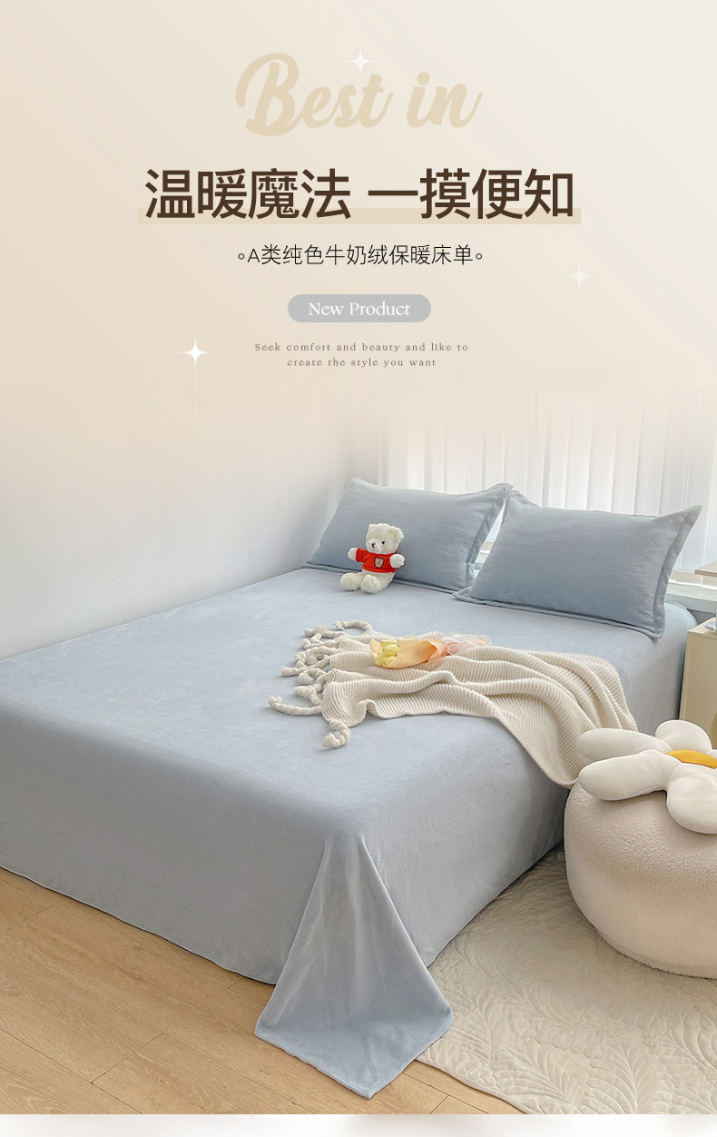 寐居家纺 2023新款纯色牛奶绒保暖床单 冰雪蓝