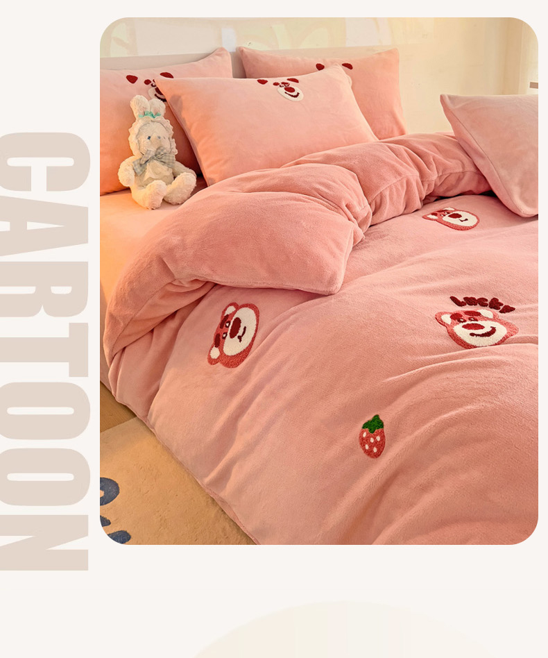 (总)寐居家纺 2025新款毛球毛巾绣牛奶绒四件套,毛球球·巴克汪仔,毛球球·豆蔻女孩,毛球球·奶黄拉布,毛球球·心动KT喵,组合图仅供展示不可下单