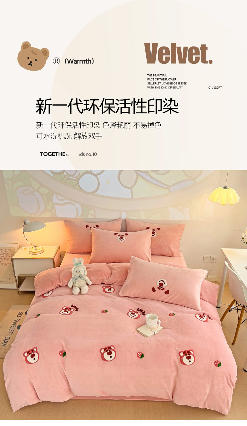 (总)寐居家纺 2025新款贴布绣高克重牛奶绒四件套,安吉拉喵,查理狗,粉糯kitty,皮皮布布