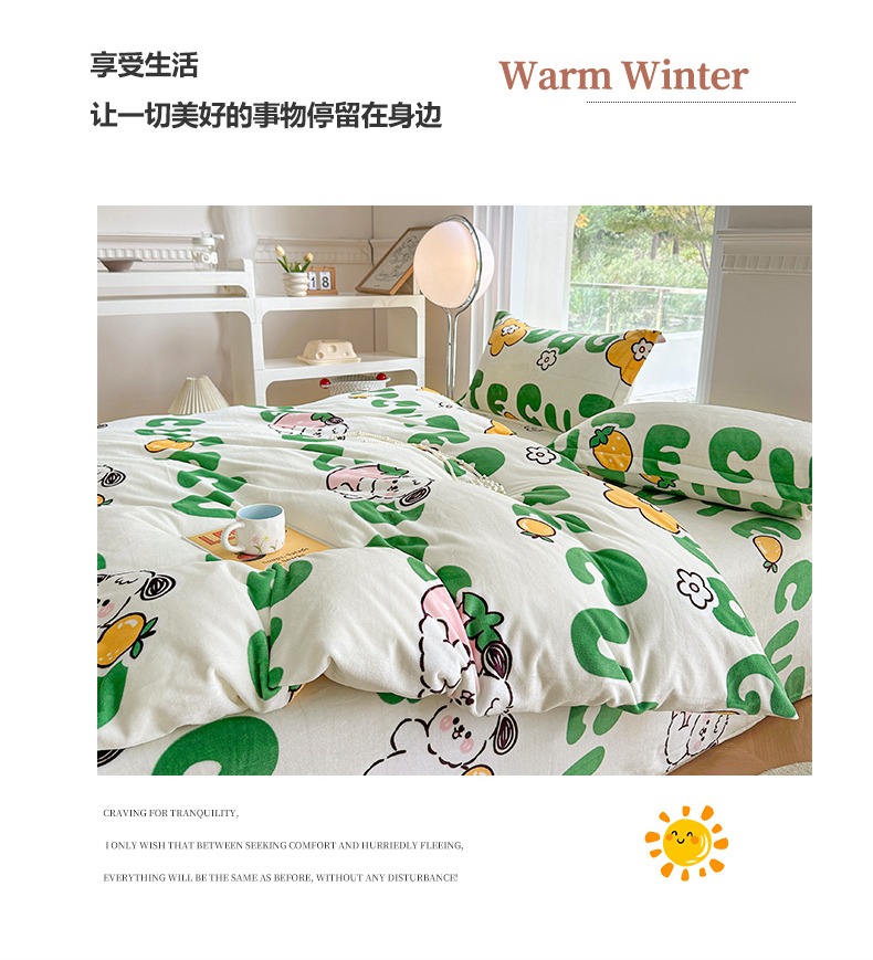 (总)胜权家纺 2024新款小香风牛奶绒夹棉床盖四件套-芭莎系列,芭莎-粉,芭莎-绿,芭莎-紫,芭莎-米