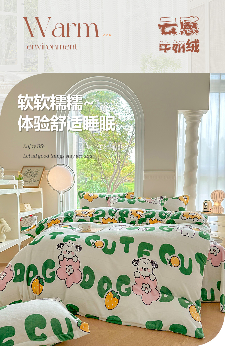 商品名称:2024秋冬新款牛奶绒单被套 快乐汪汪