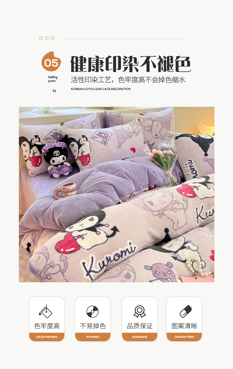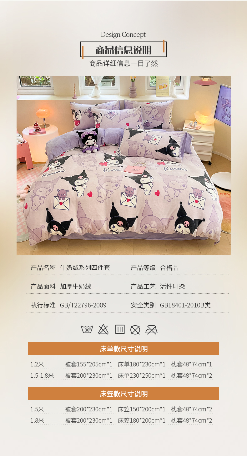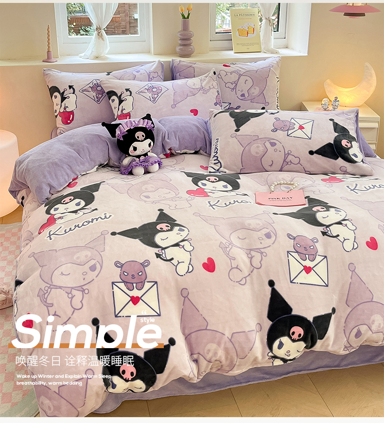 当前位置: 91家纺网 > 商品网购 > 床品套件 > 四件套 > 牛奶绒四件套 > 桃子 2023新款正版三丽鸥授权卡通加厚高克重牛奶绒系列四件套 绒三丽鸥-梦幻库洛米