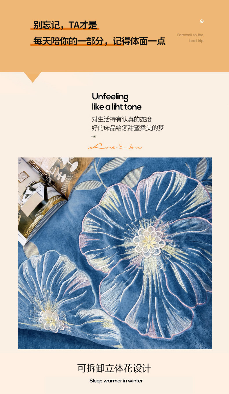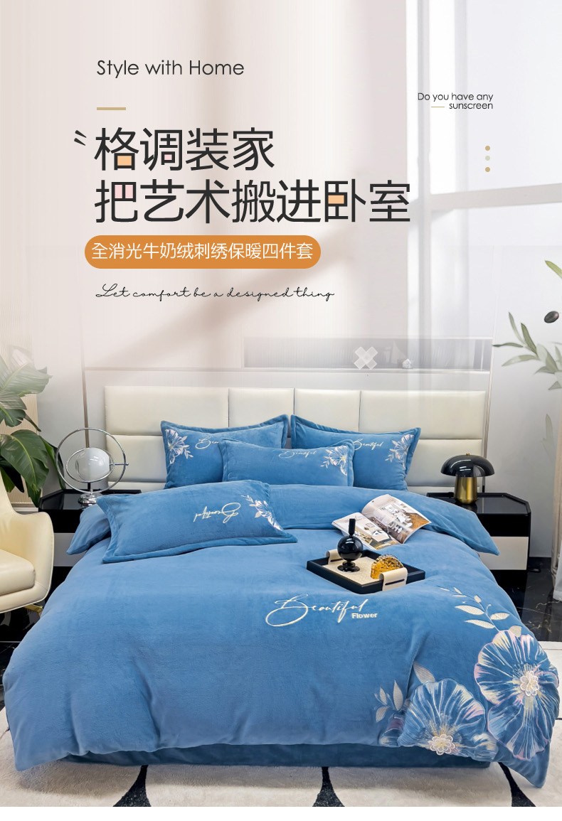 当前位置: 91家纺网 > 商品网购 > 床品套件 > 四件套 > 牛奶绒四件套 > (总)星尚家纺 2023新款全消光牛奶绒230g-花漾四件套