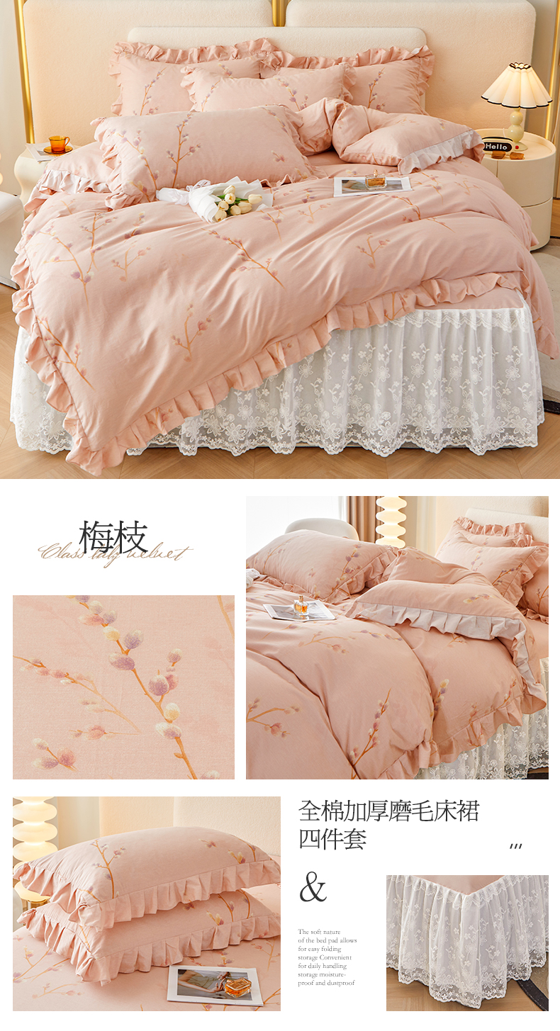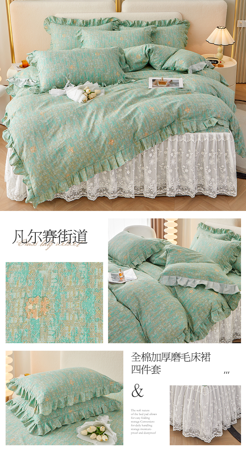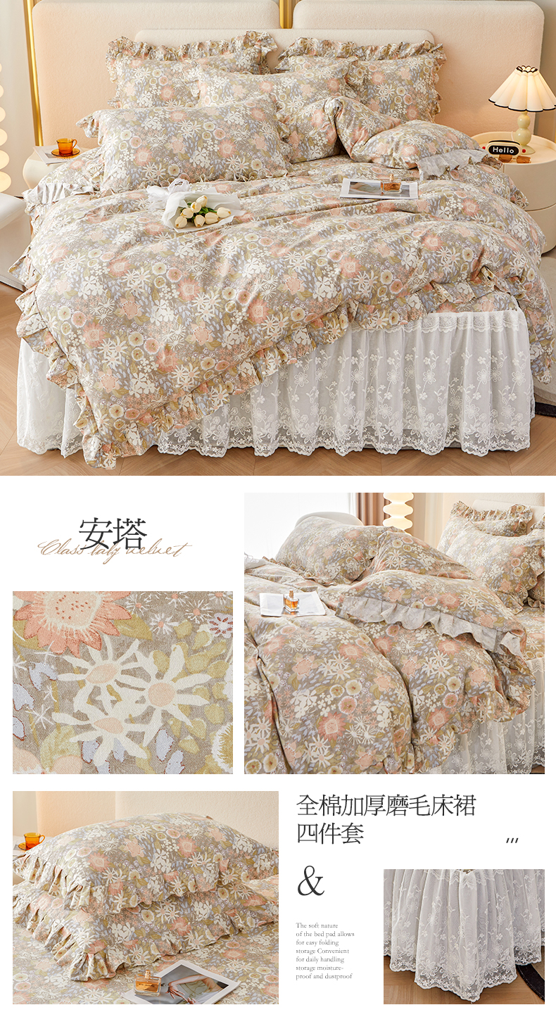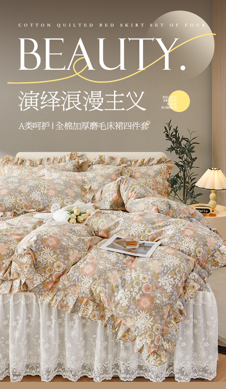 (总)宜凡家纺 2023新款全棉加厚磨印花毛床裙四件套
