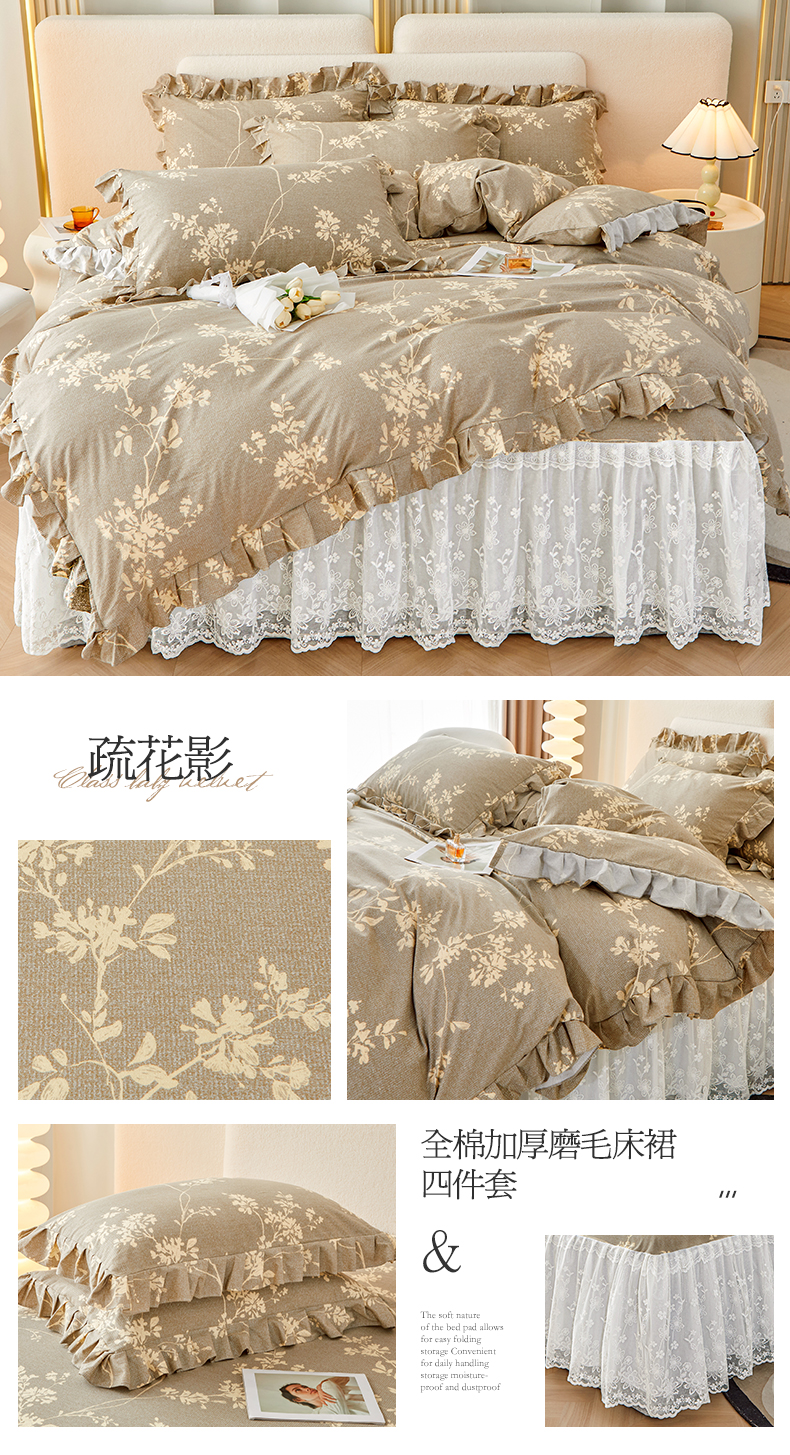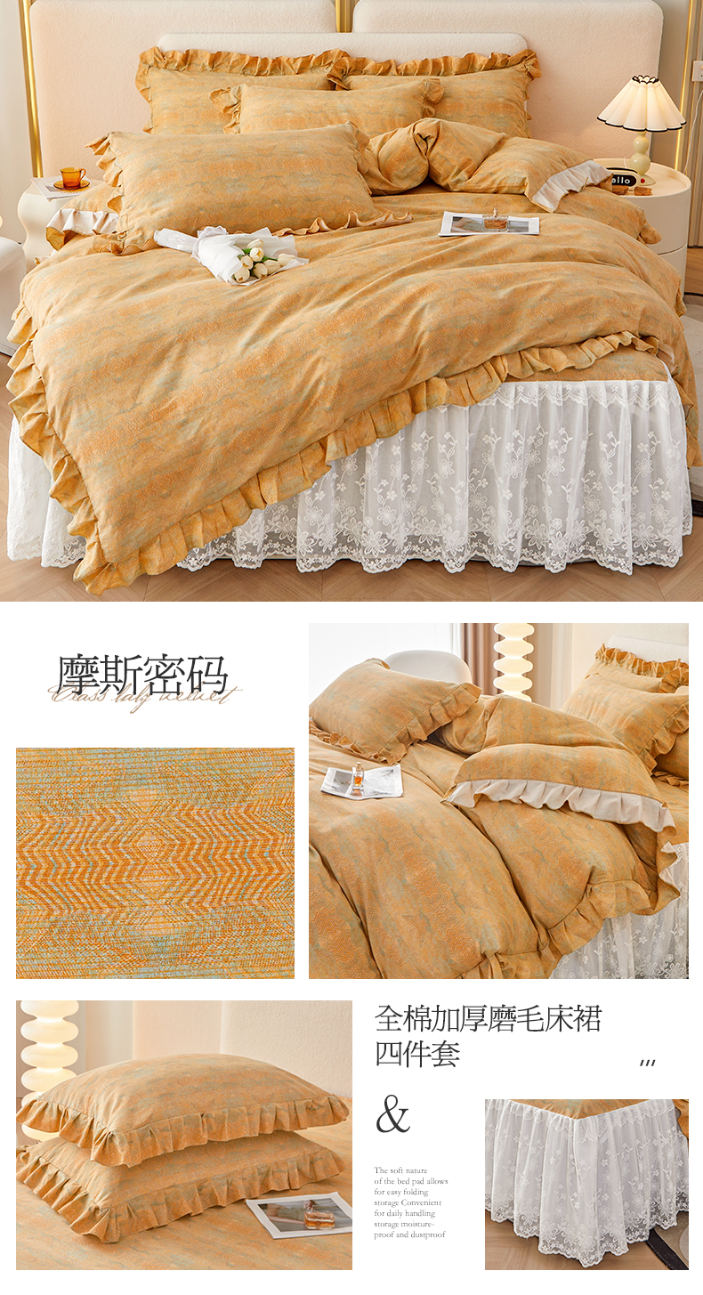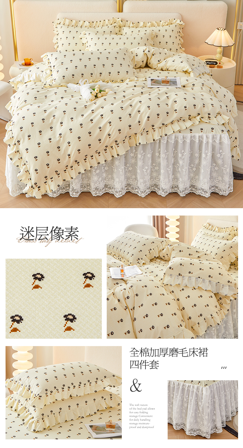 (总)宜凡家纺 2023新款全棉加厚磨印花毛床裙四件套