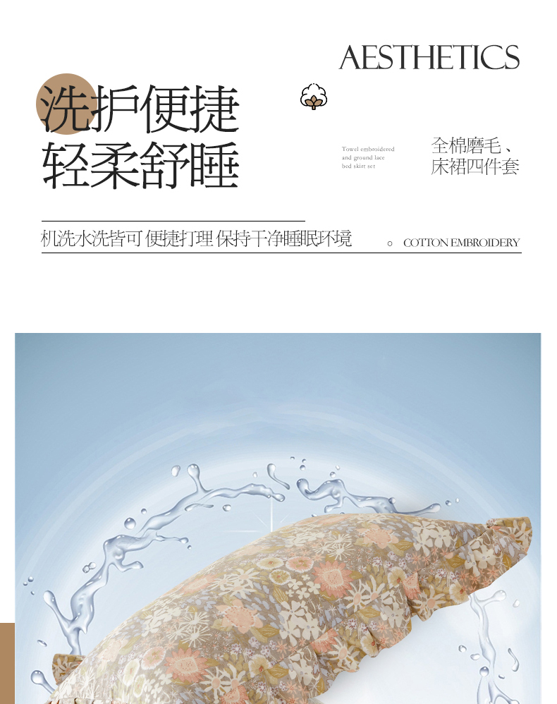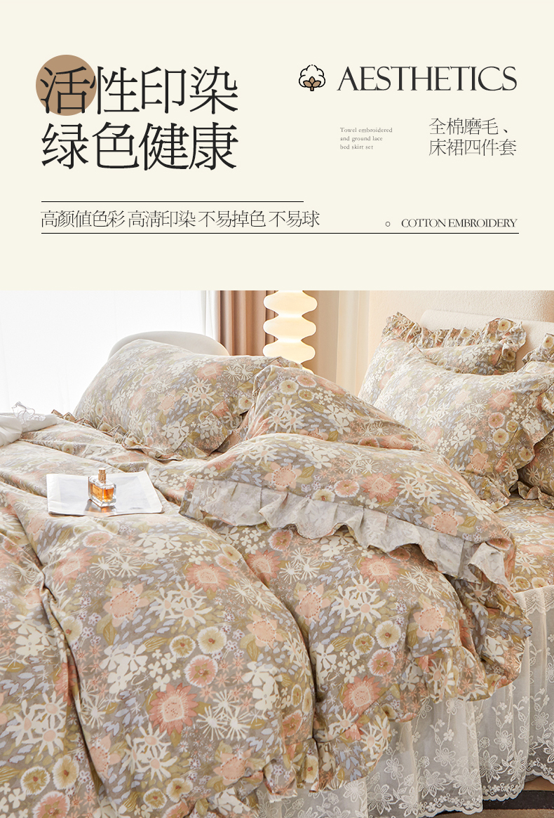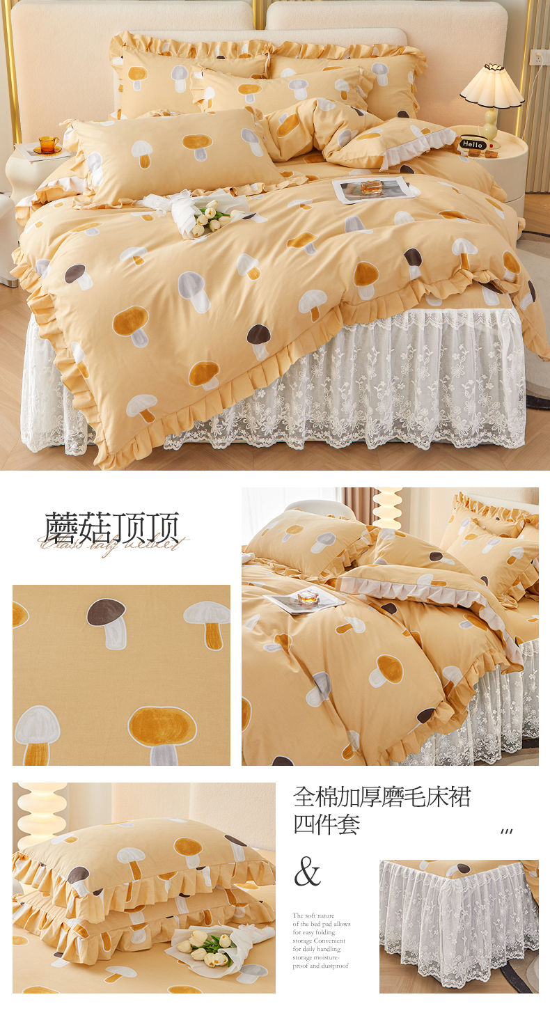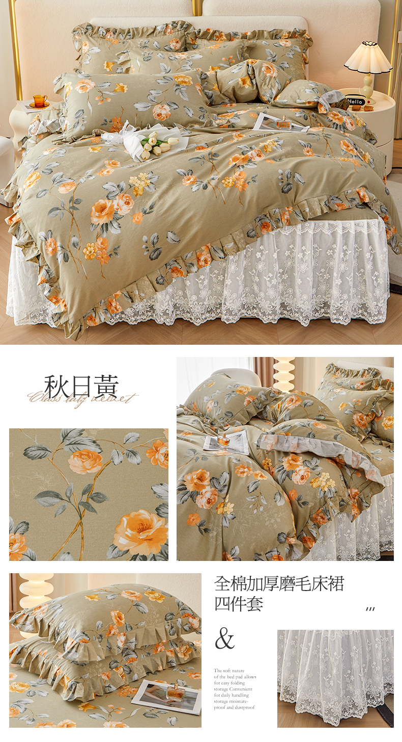 商品名称:(总)宜凡家纺 2023新款全棉加厚磨印花毛床裙四件套