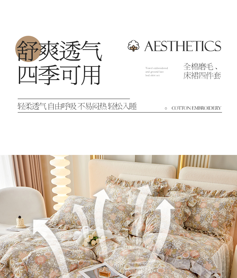 (总)宜凡家纺 2025新款全棉数码印花床裙四件套系列一,静若幽兰,浮云织梦,梦幻花园,陌上花开