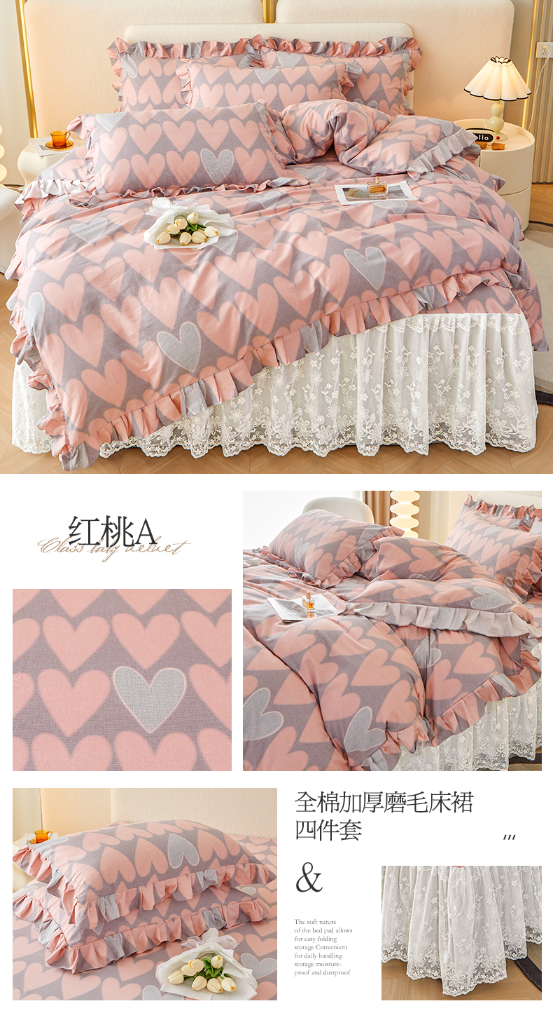 (总)宜凡家纺 2025新款兔绒提花牛奶绒夹棉床裙四件套,爱心 少女粉,爱心 粉紫,爱心 驼色,蝶舞 大红,蝶舞 米色,蝶舞 浅紫,蝶舞 玉色,简爱 苍青,简爱 豆沙紫,简爱 玉色,樱桃 苍青,樱桃 豆沙紫,樱桃 奶油白