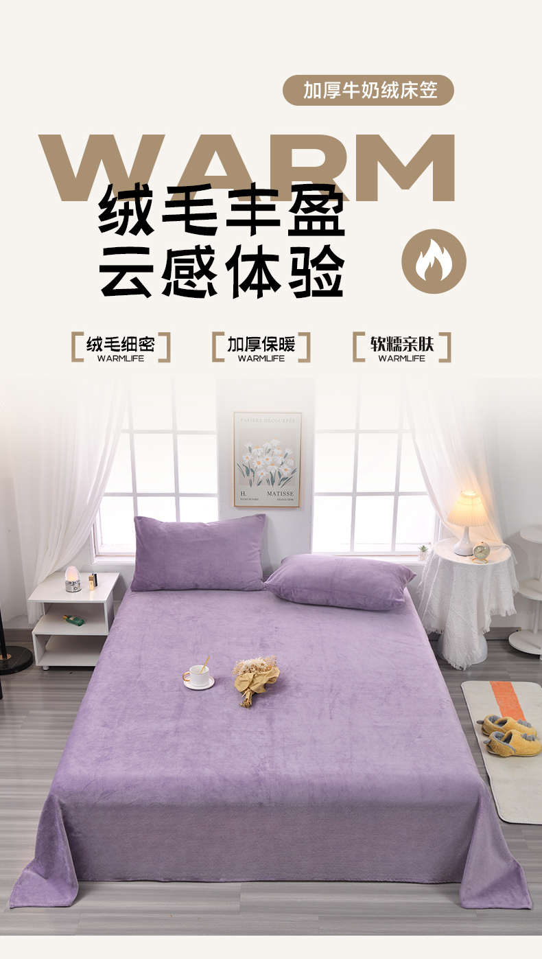 • 91家纺网 家纺一手货源 找家纺 泽西 2023新款保暖牛奶绒床单床笠单品-单床单 牛奶绒床单-香芋紫