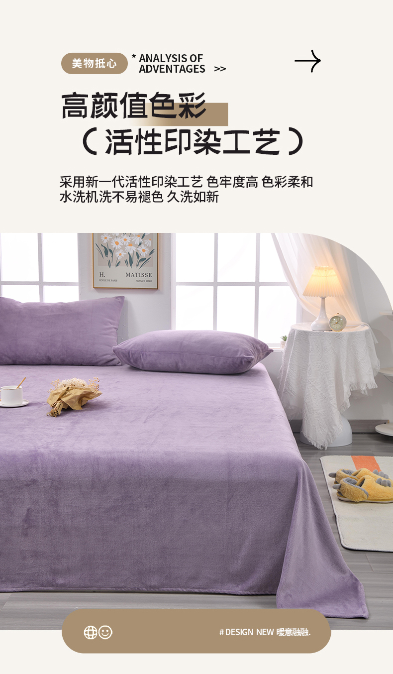 泽西 2023新款保暖牛奶绒床单床笠单品-单床单 牛奶绒床单-香芋紫