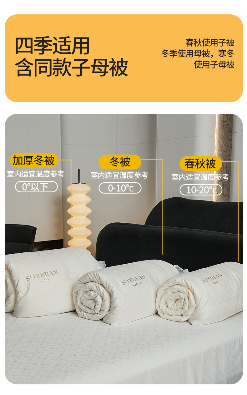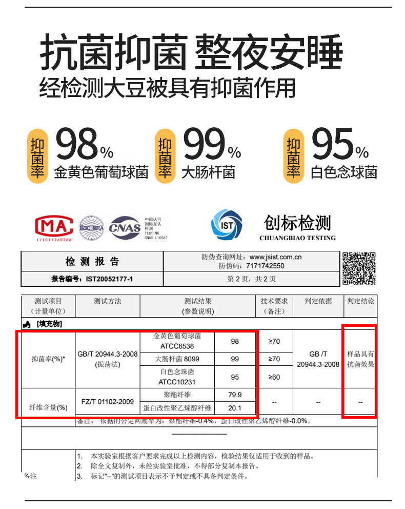 • 填充纤维种类: 大豆蛋白改性聚酯纤维