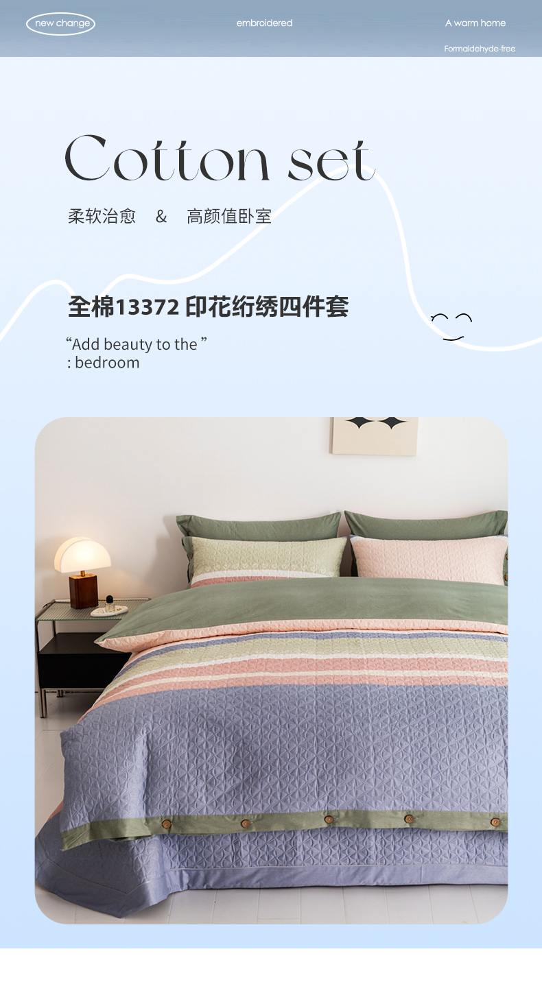 (总)优乐家纺 2025新款全棉斜纹13376单层被套夹棉床盖款四件套,安琪-黄,安琪-绿,波西米亚,博尔-咖,春意盎然,朵唯,花颜悦色,迷雾,慕斯,南薇,南薇-兰,普卡拉-红,普卡拉-兰,清婉,蔚然花,早春
