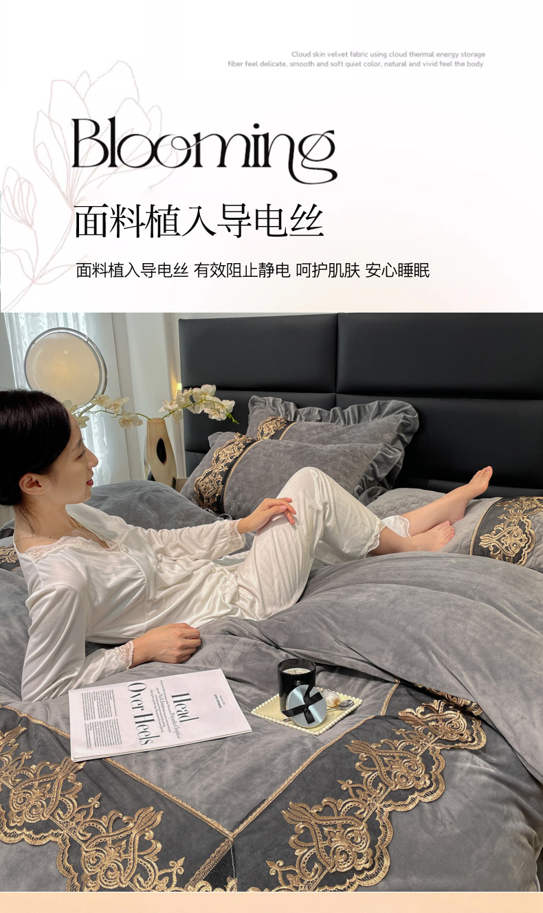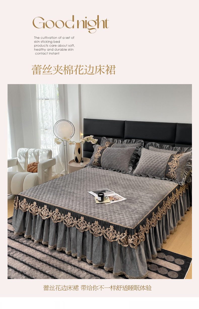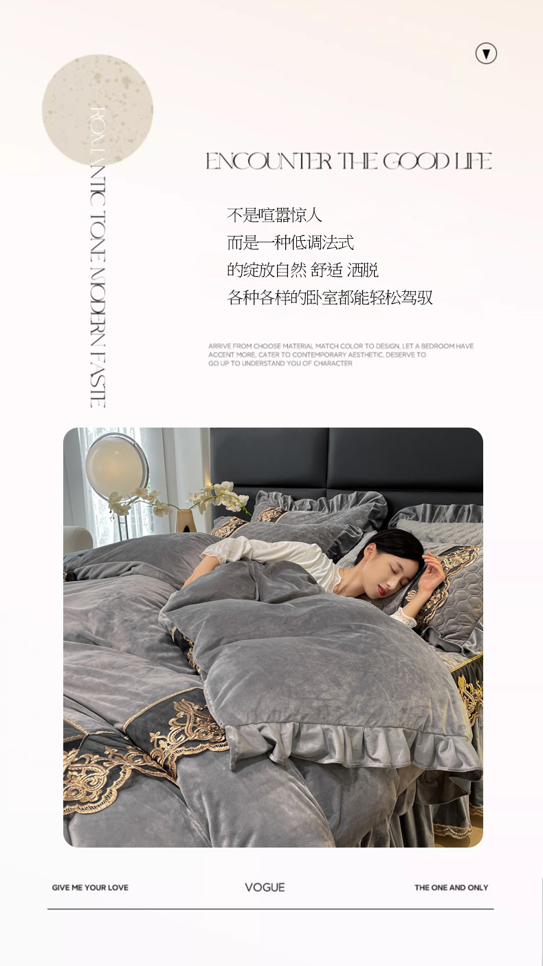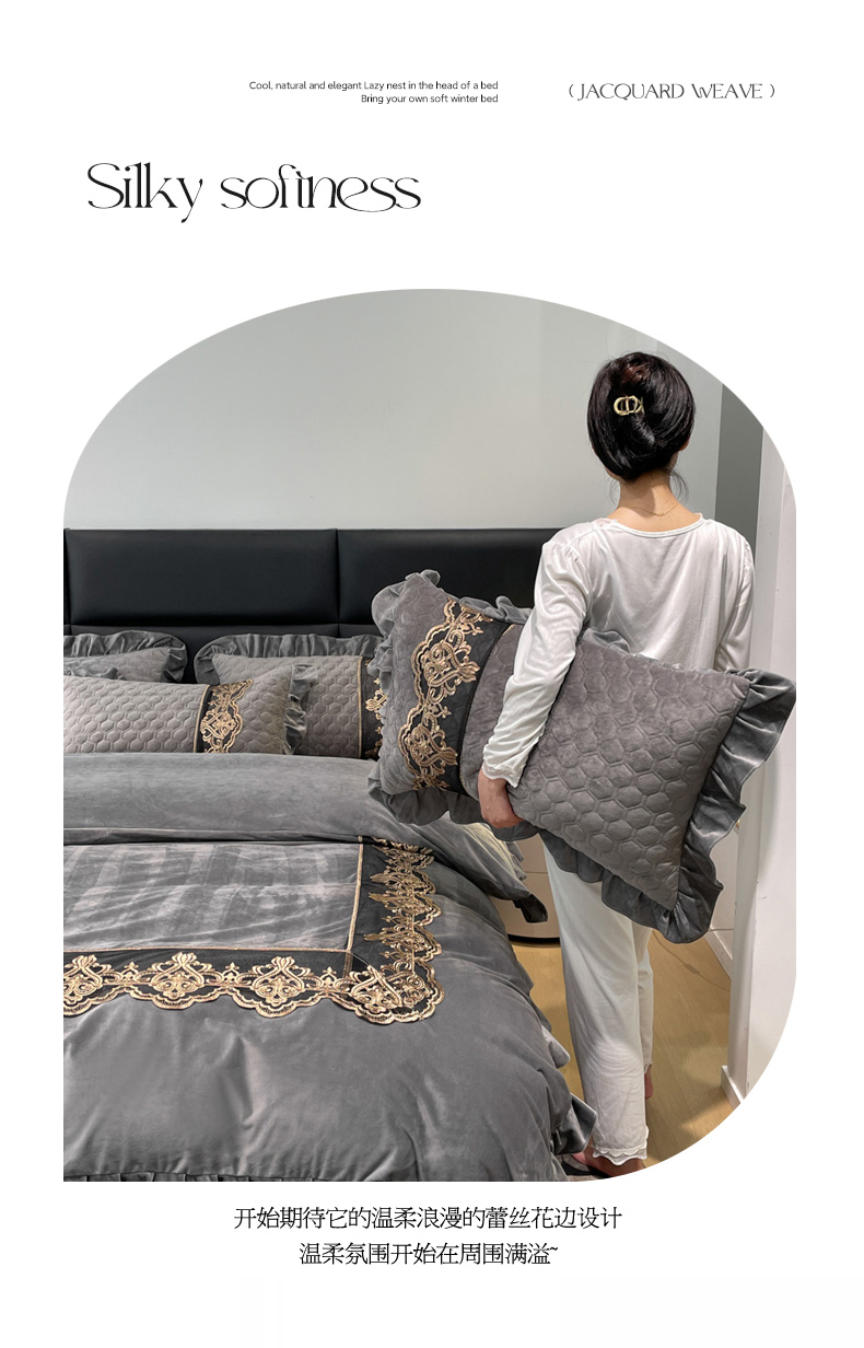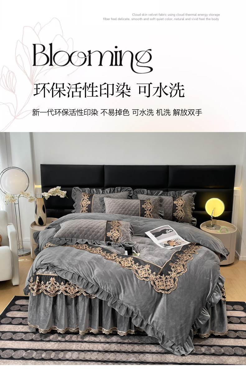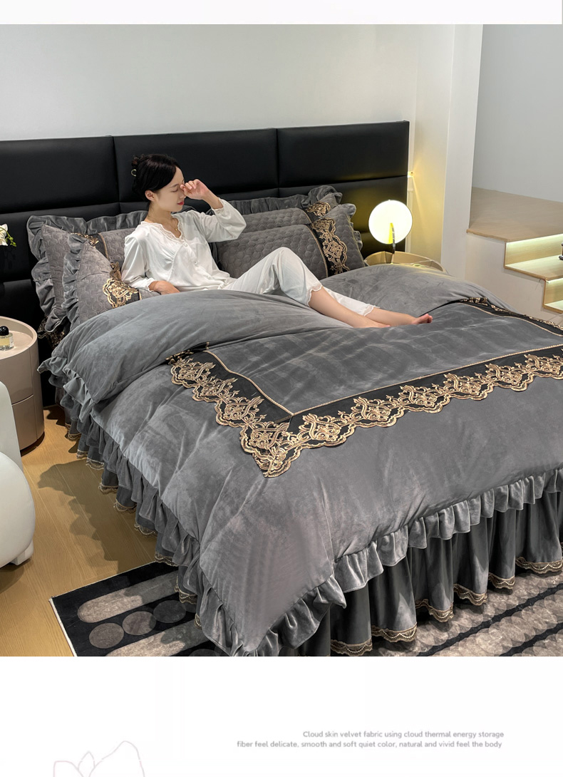 当前位置: 91家纺网 > 商品网购 > 床品套件 > 四件套 > 宝宝绒四件套 > 忘忧草 2023新款婴儿绒夹棉床裙四件套-爱莎 高级灰