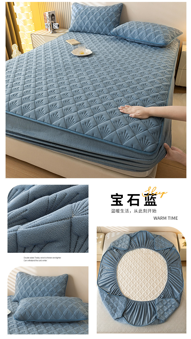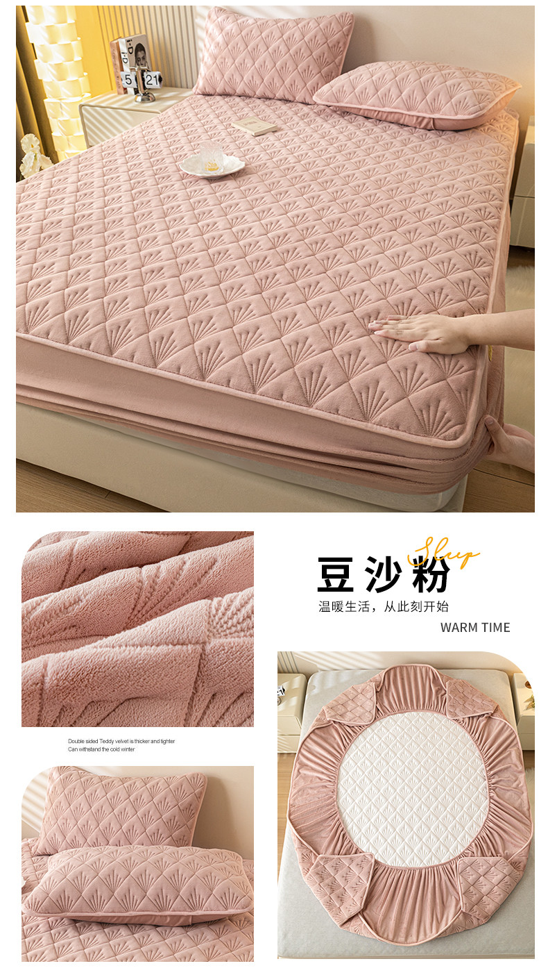 商品名称:(总)鑫钰 2023秋冬年新款高克重牛奶绒夹棉床笠床罩席梦思保护套