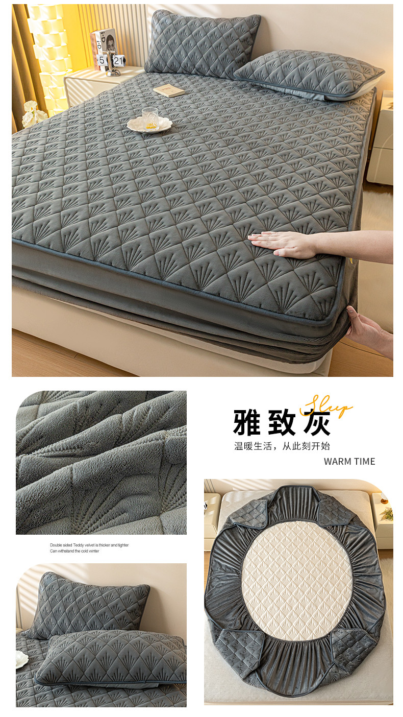 (总)鑫钰 2023秋冬年新款高克重牛奶绒夹棉床笠床罩席梦思保护套