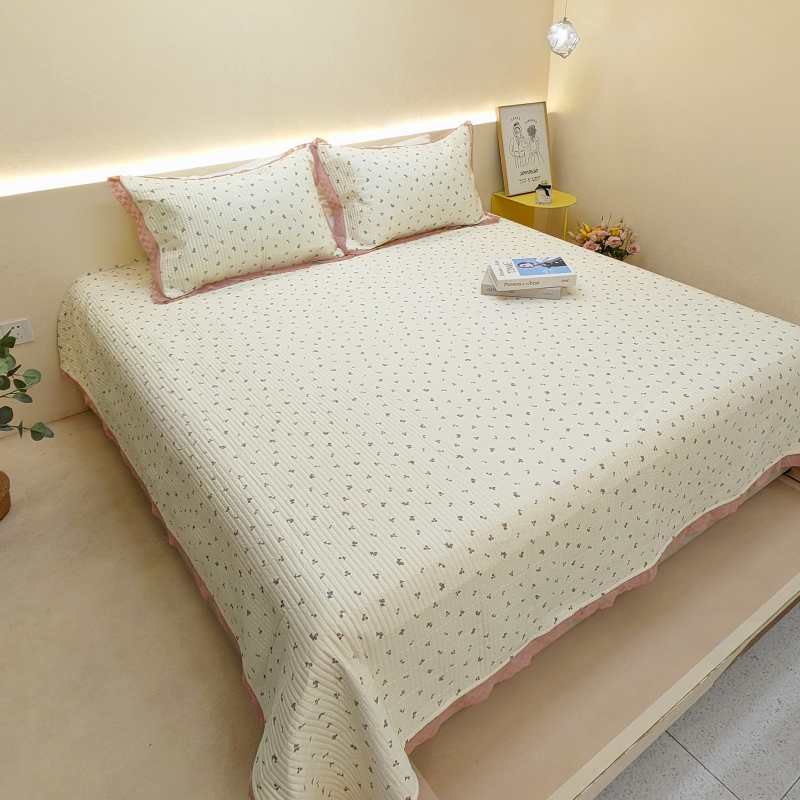 有货 2023秋冬新品韩式13372全棉棉花床盖三件套 床盖-快乐樱桃