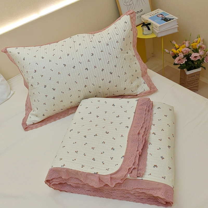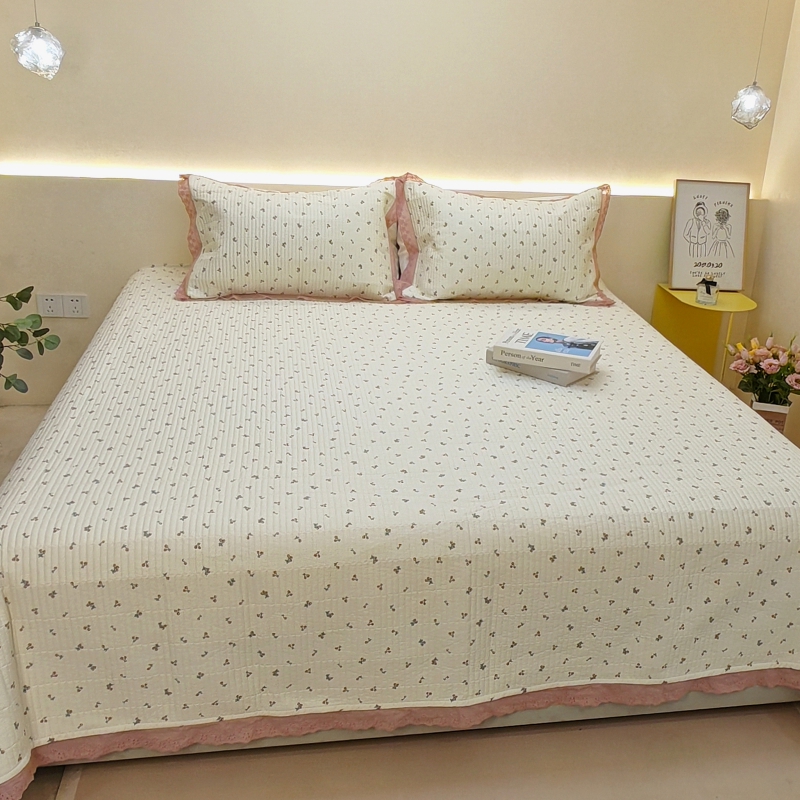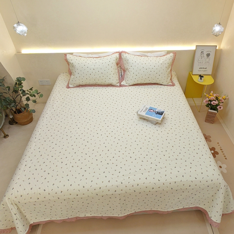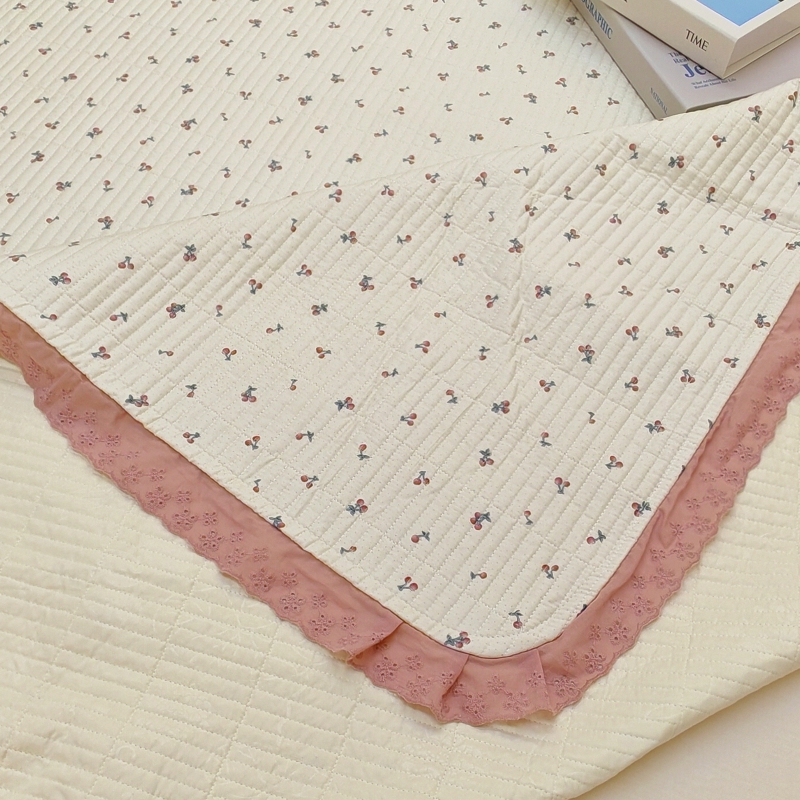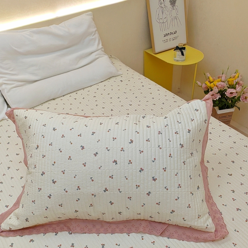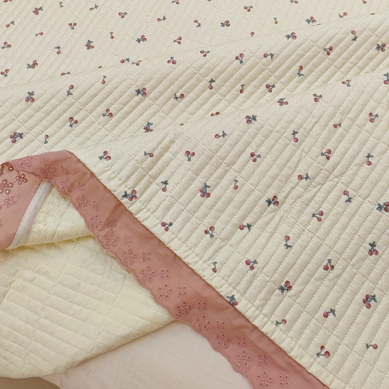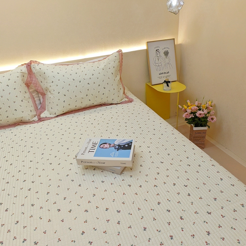 商品名称:有货 2023秋冬新品韩式13372全棉棉花床盖三件套 床盖-快乐樱桃