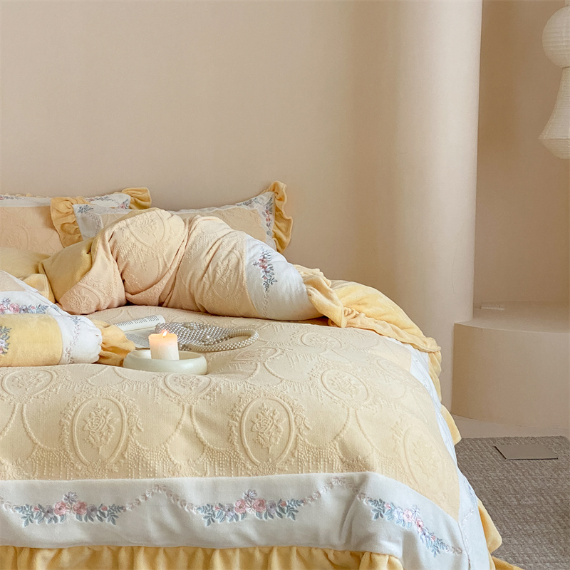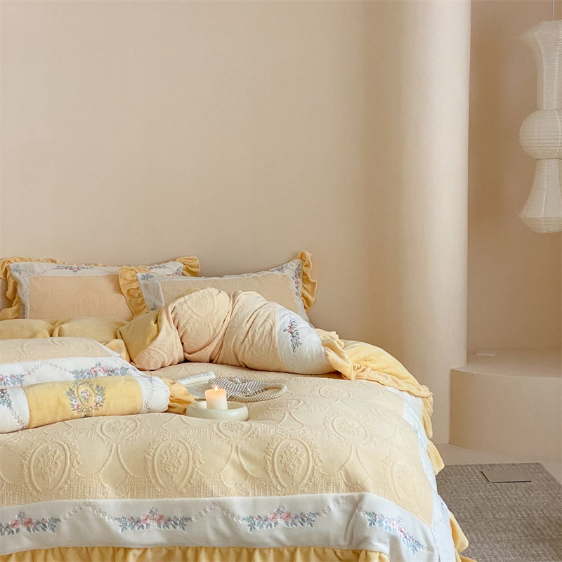 馨蕊 2023新款300克极细腻超柔煦暖绒进口导电丝四件套-浪漫主义 柠檬黄