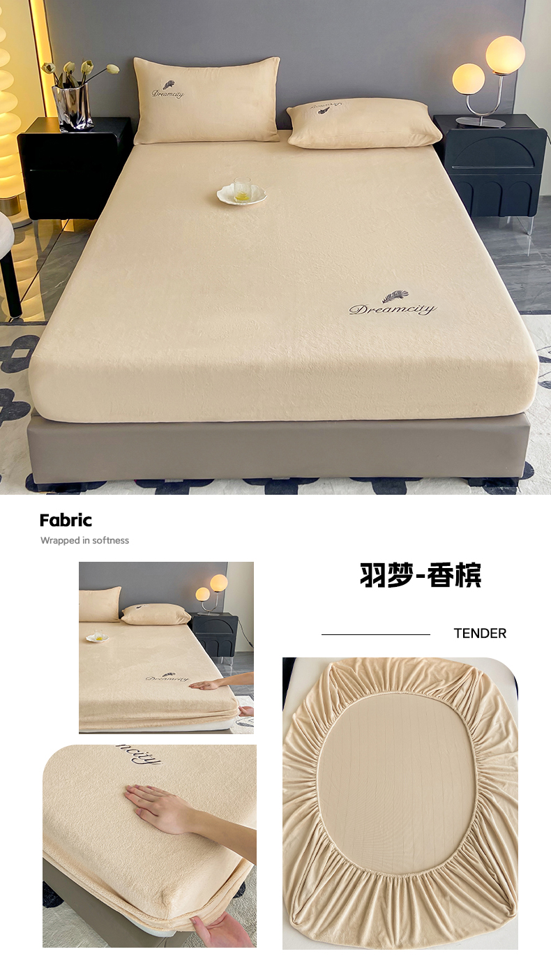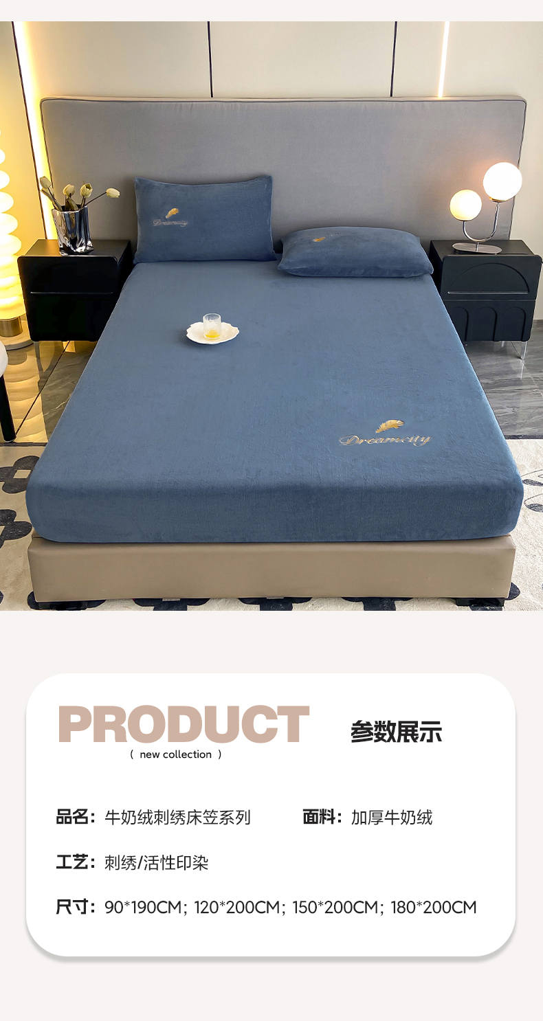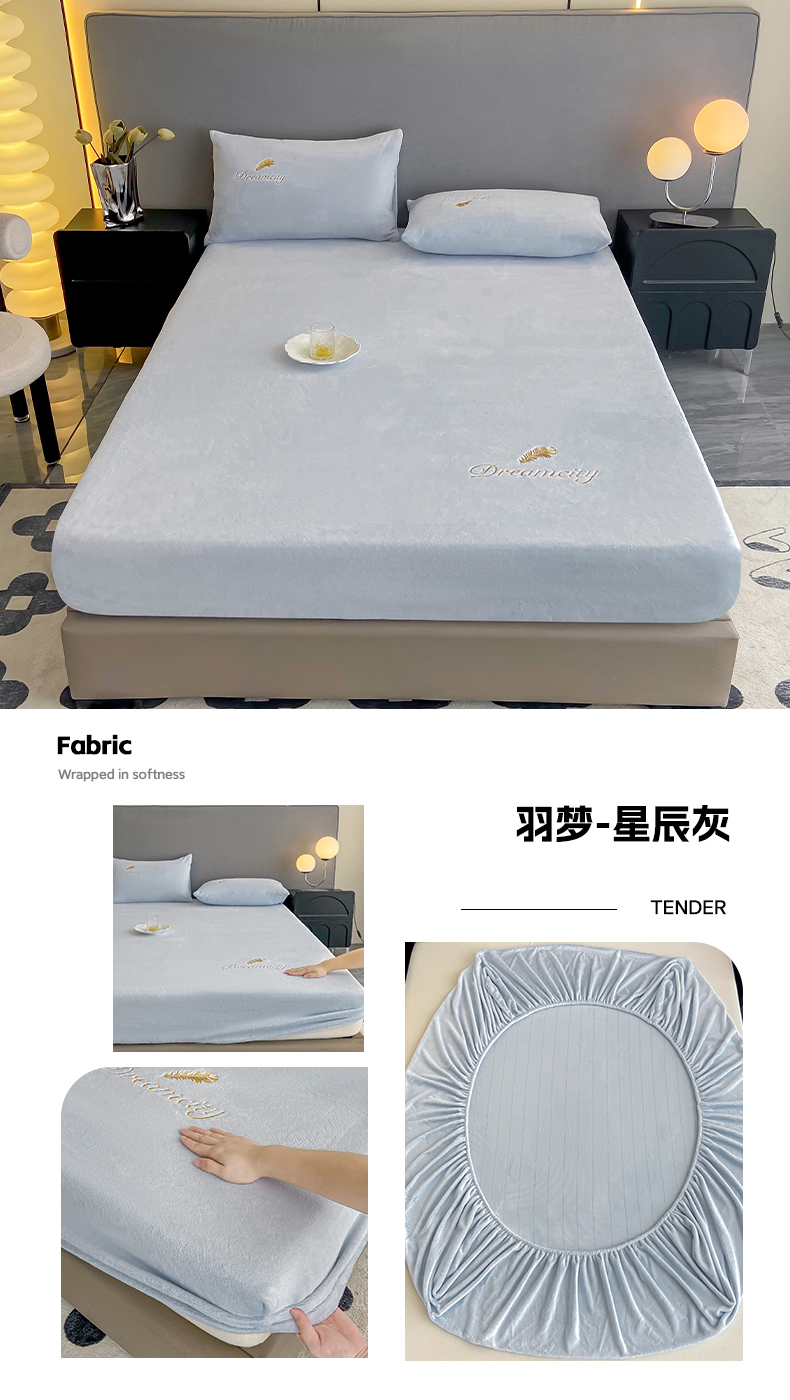 (总)古吉梦 2023新款牛奶绒刺绣床笠-羽梦