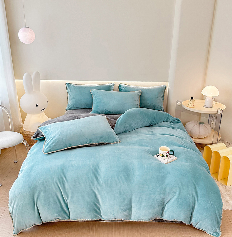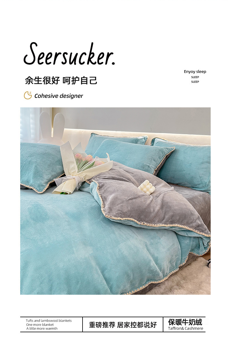 (总)迷仙巢家纺 2023新款双拼牛奶绒四件套,白加卡其,白加天空蓝,奶油黄加焦糖,奶油黄加浅紫,奶油黄加天空蓝,浅绿灰,浅紫加玉,天空蓝加灰,天空蓝加玉,玉加灰,玉加奶油黄