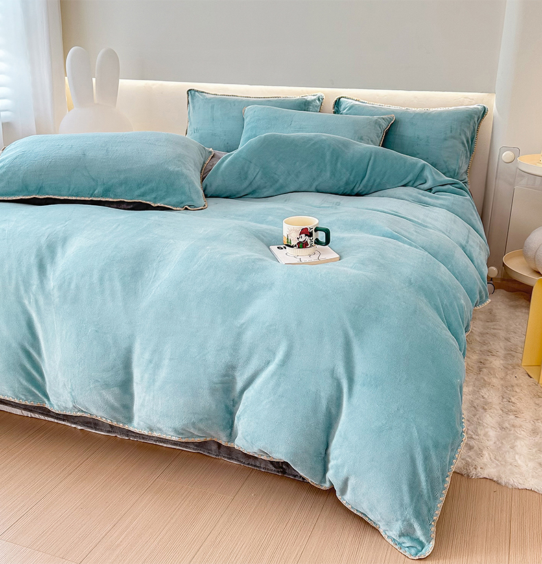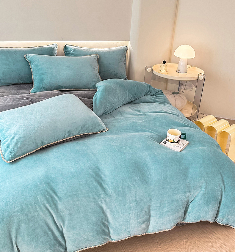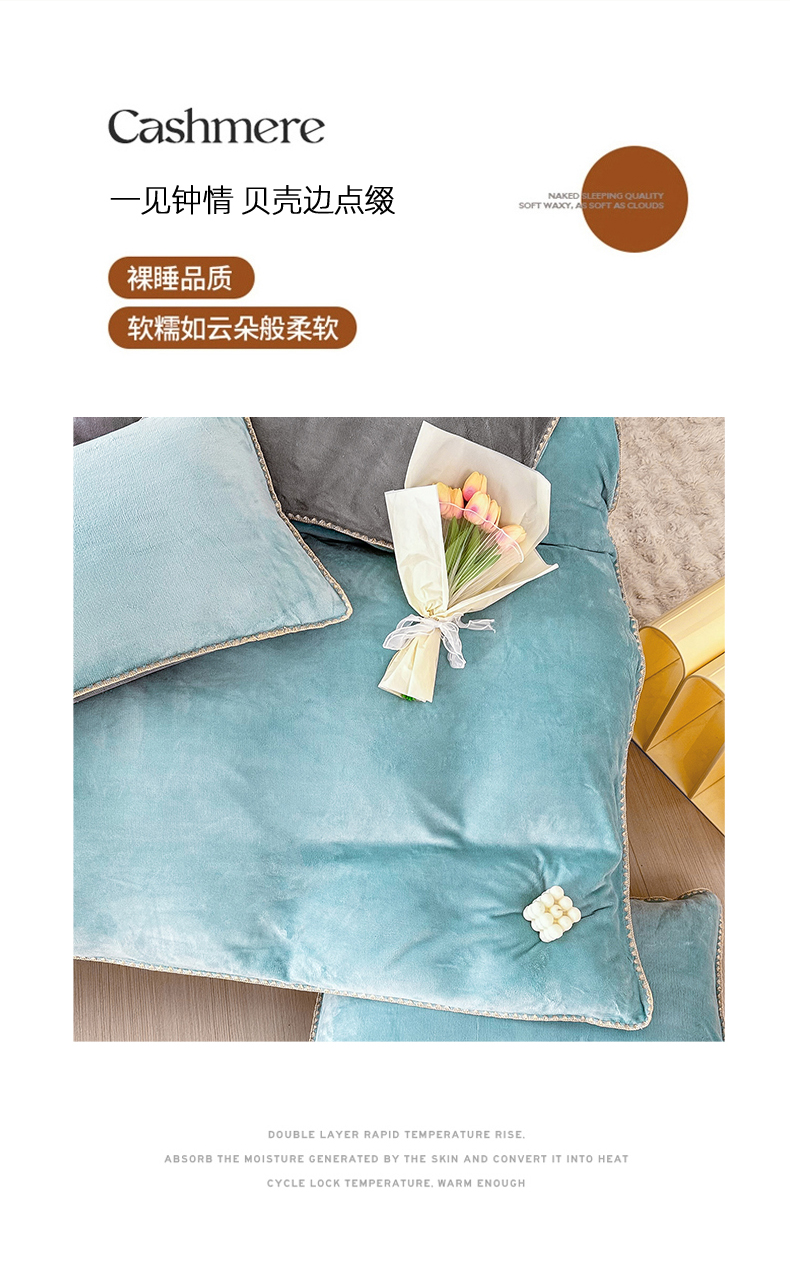 迷仙巢家纺 2023新款贝壳绒四件套 浅绿灰