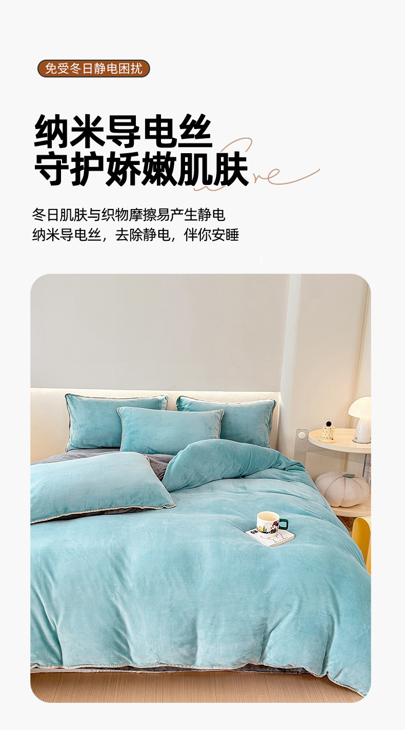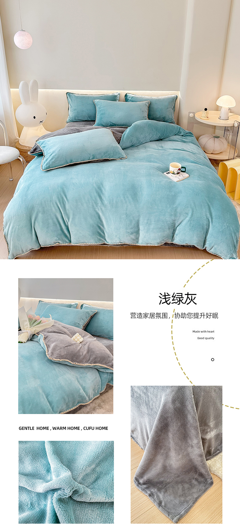 商品名称:迷仙巢家纺 2023新款贝壳绒四件套 浅绿灰