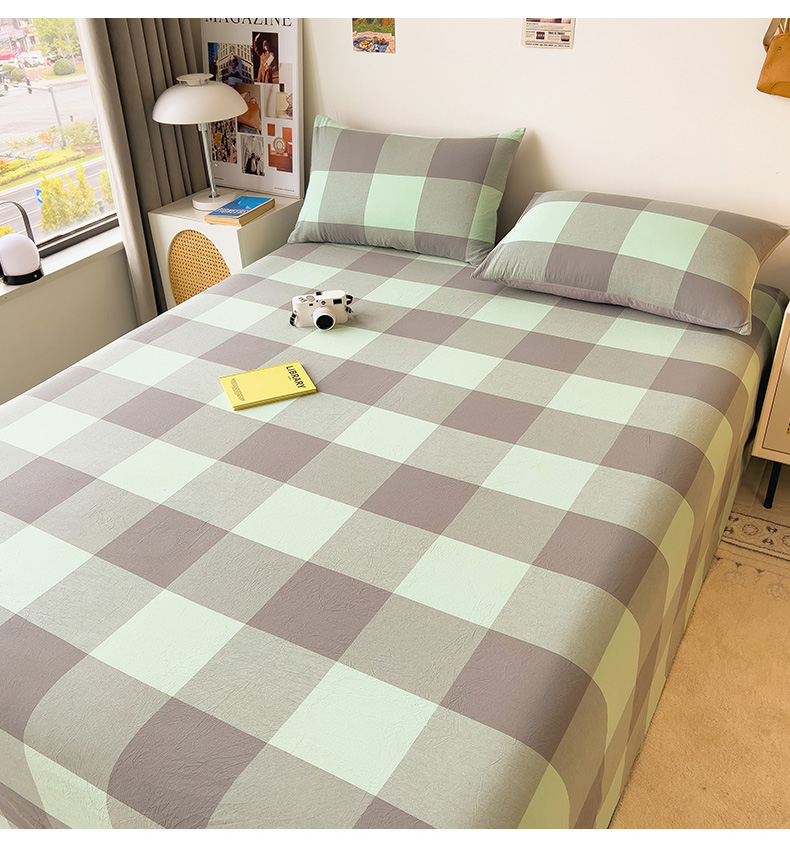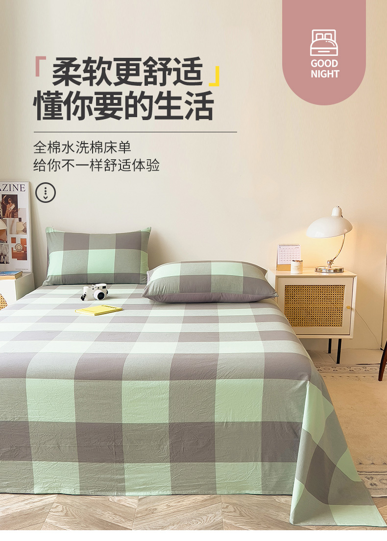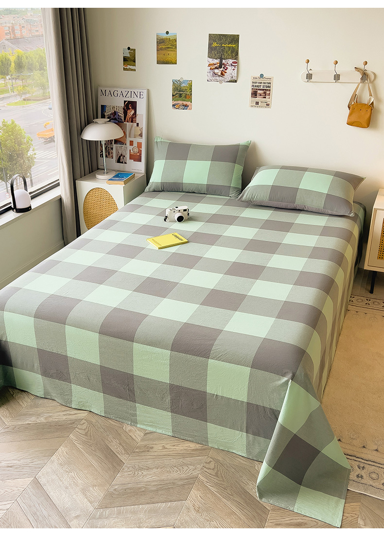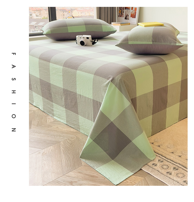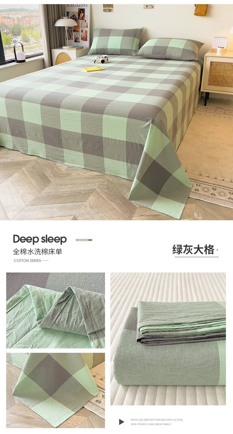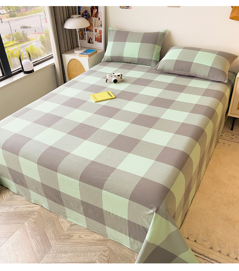 芃成家纺 2023新款全棉水洗棉床单 绿灰大格