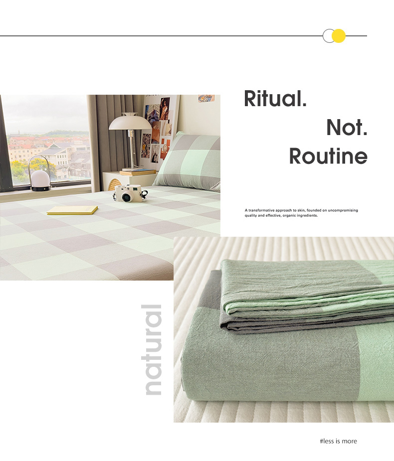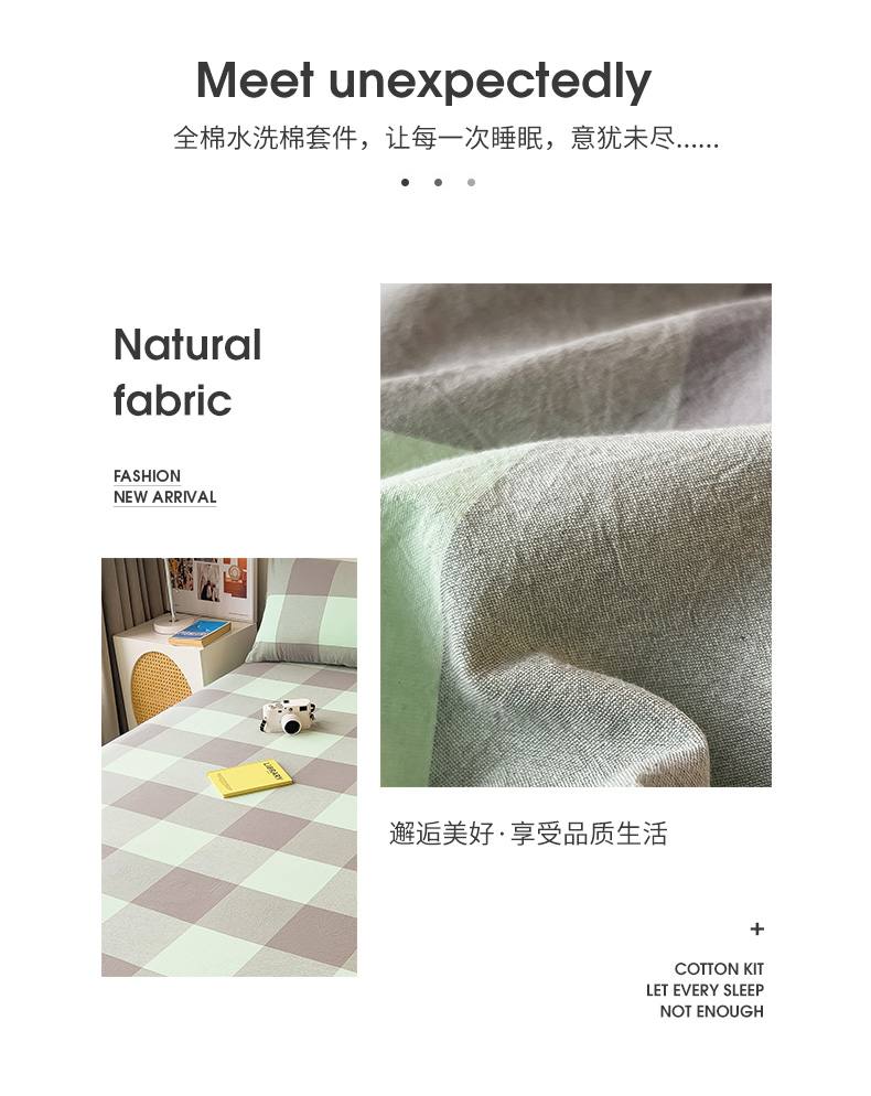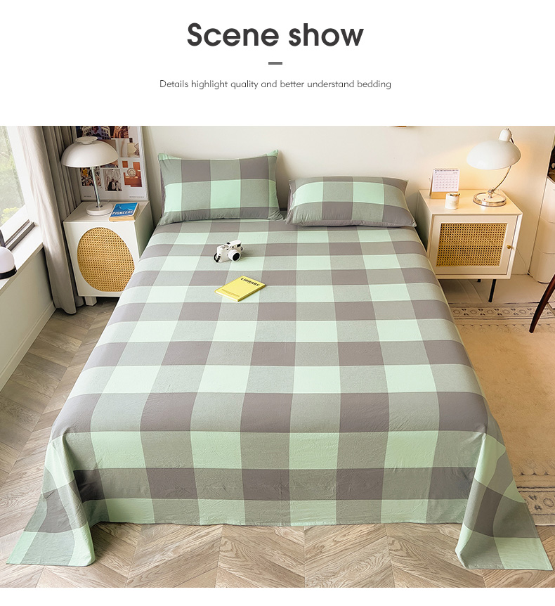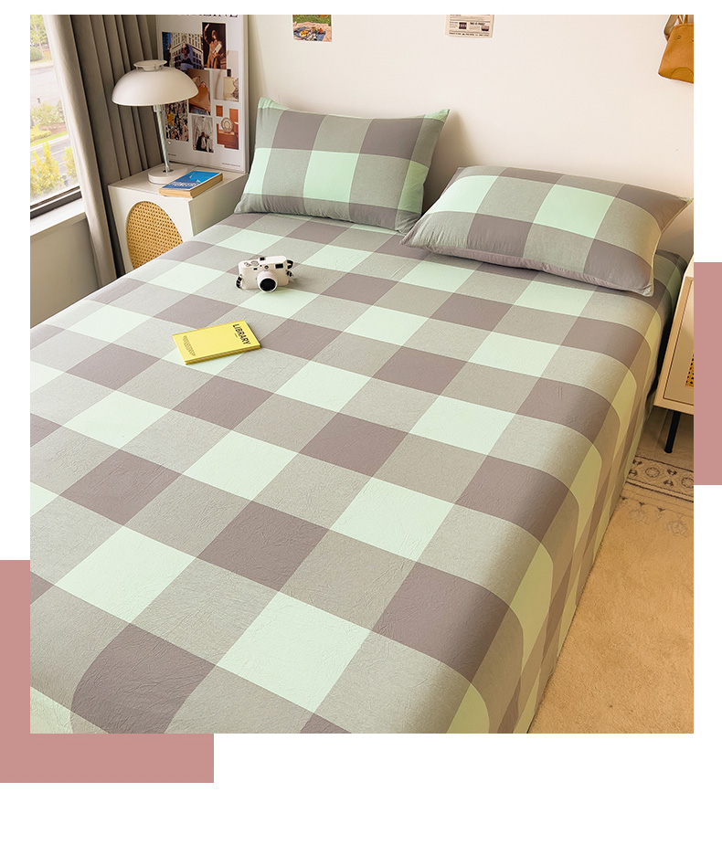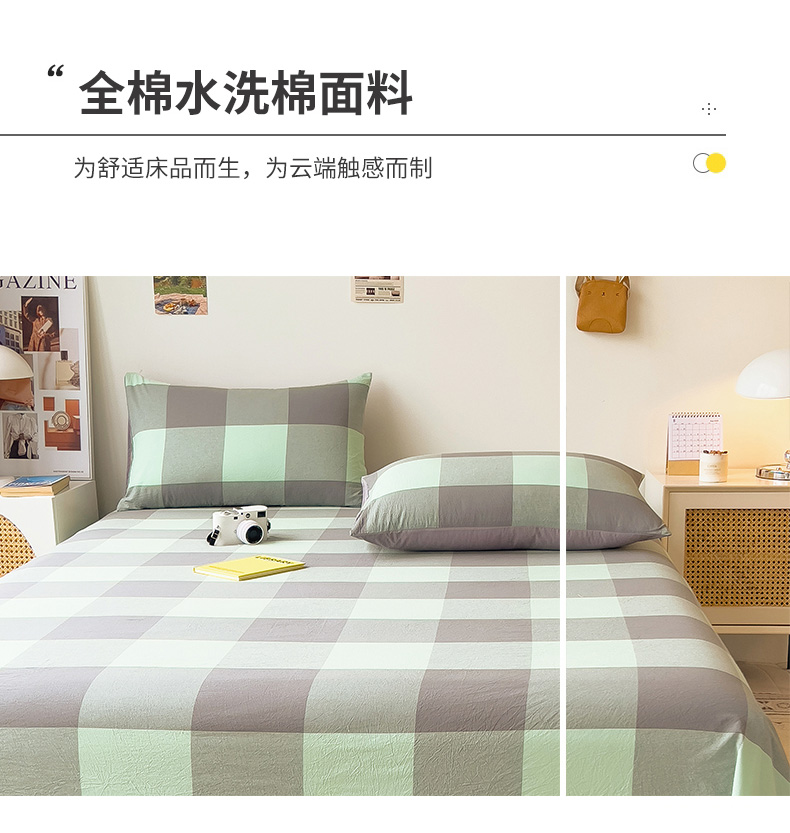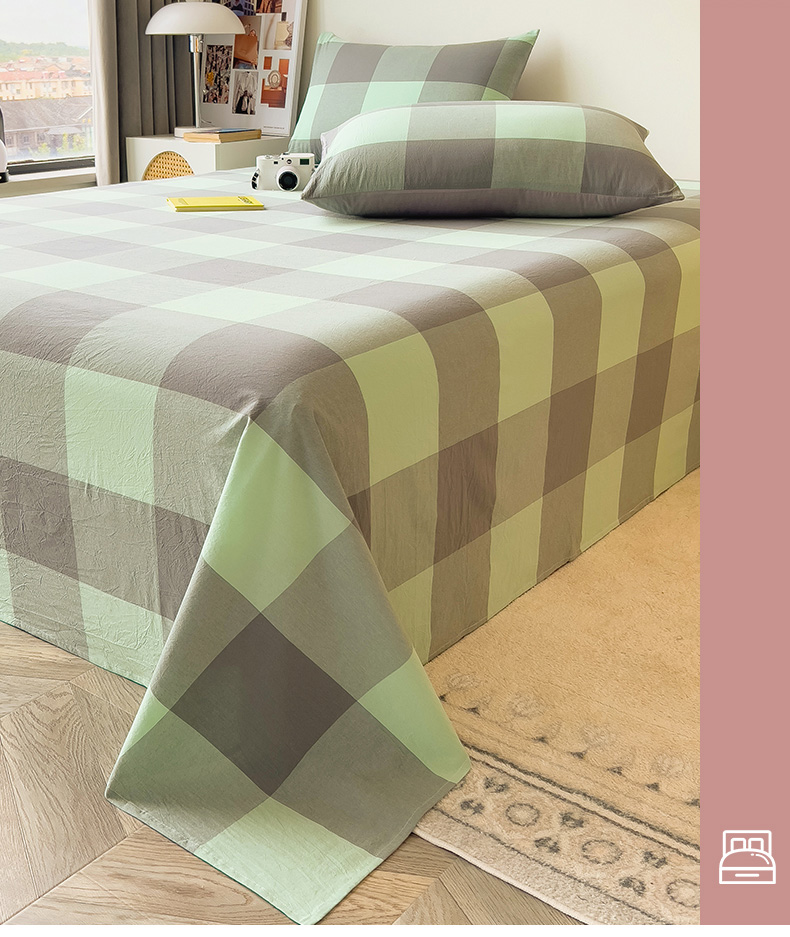 芃成家纺 2023新款全棉水洗棉床单 绿灰大格