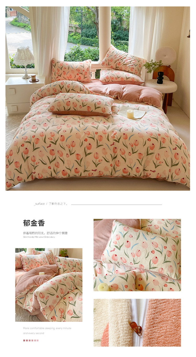 仟网汇 2023新款印花双面牛奶绒四件套 郁金香