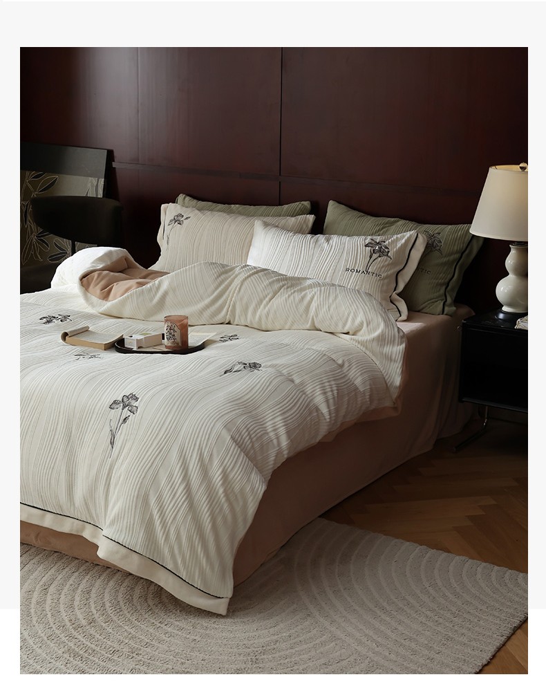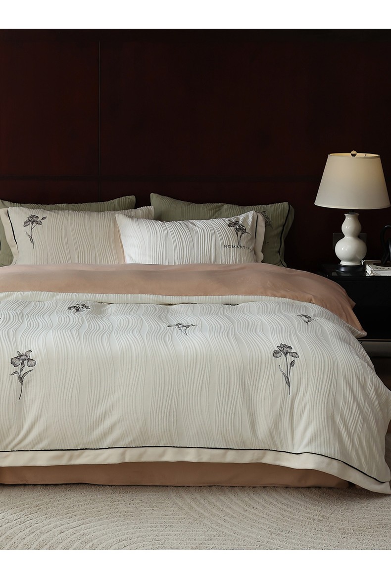 安莱生活 2023年新品专版立体牛奶绒浮梦鸢尾系列四件套-法式实拍 鸢尾印象-白茶