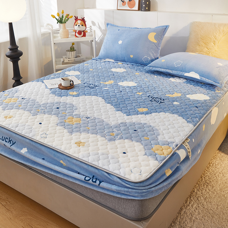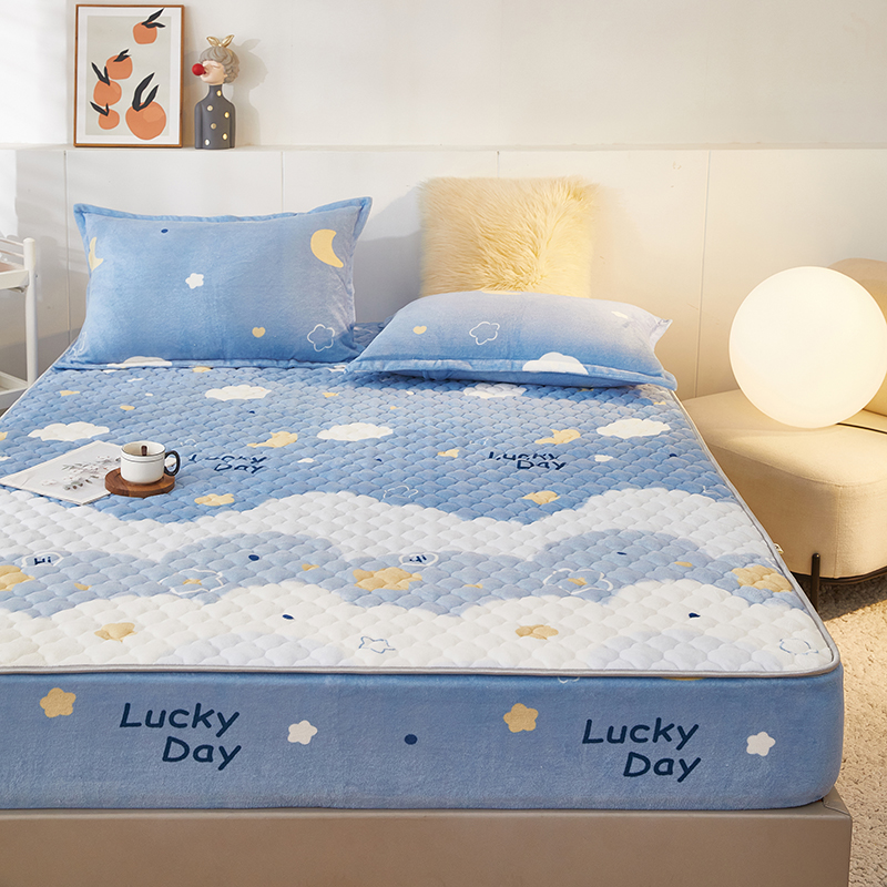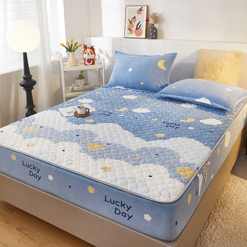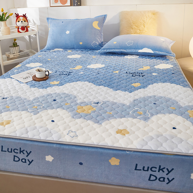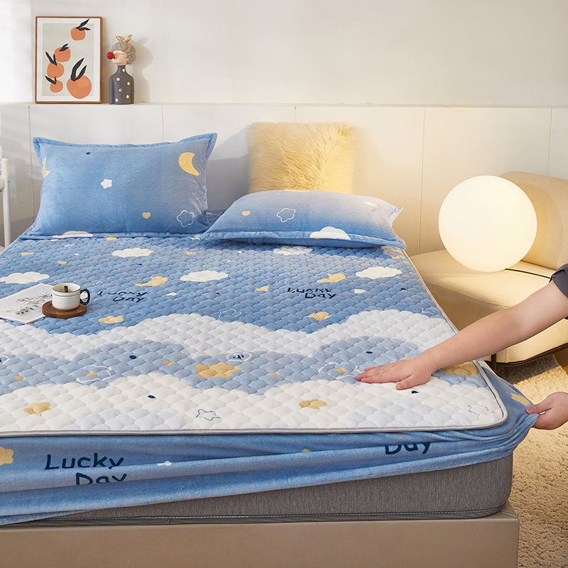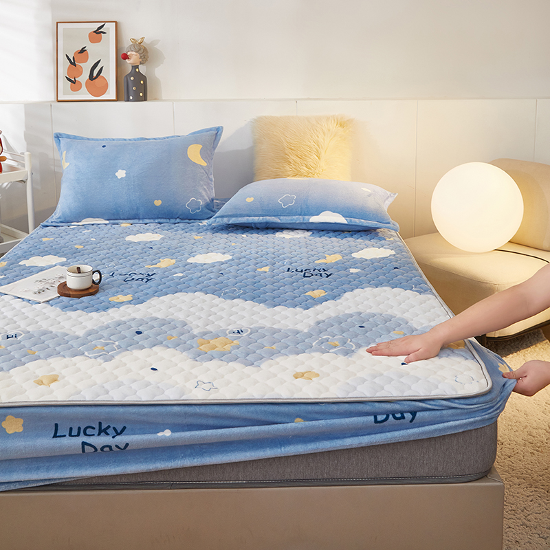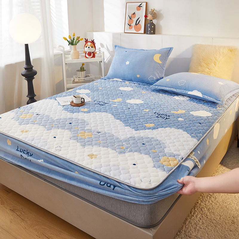 商品名称:米柳家纺 2023直播爆款牛奶绒夹棉床笠 云海