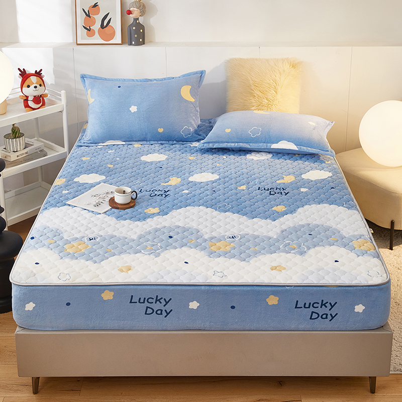 米柳家纺 2023直播爆款牛奶绒夹棉床笠 云海
