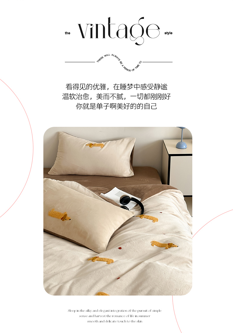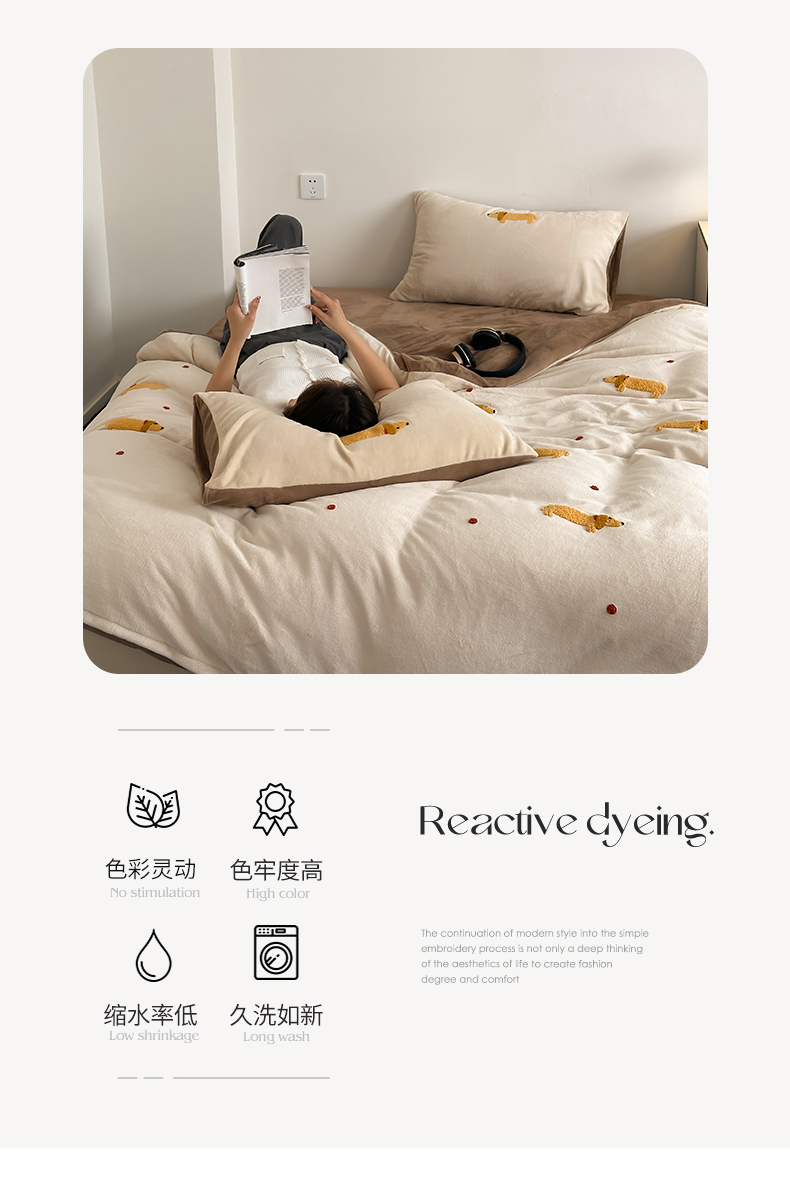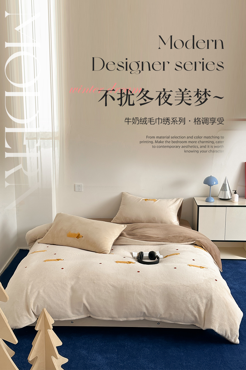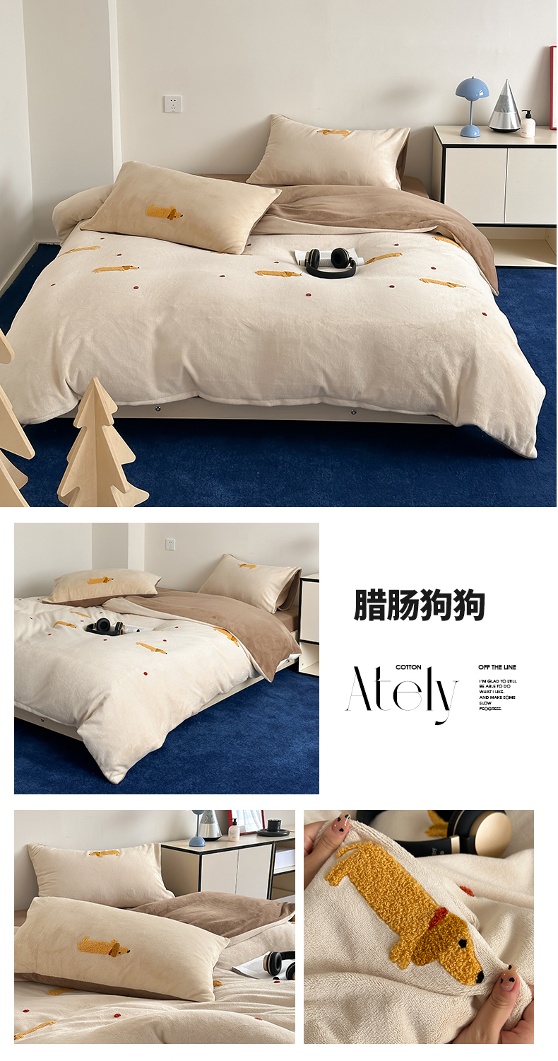 当前位置: 91家纺网 > 商品网购 > 床品套件 > 四件套 > 牛奶绒四件套 > 时年家纺 2023新款高克重牛奶绒立体毛巾绣四件套 充值会员优惠5元 腊肠狗狗