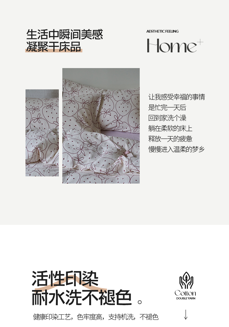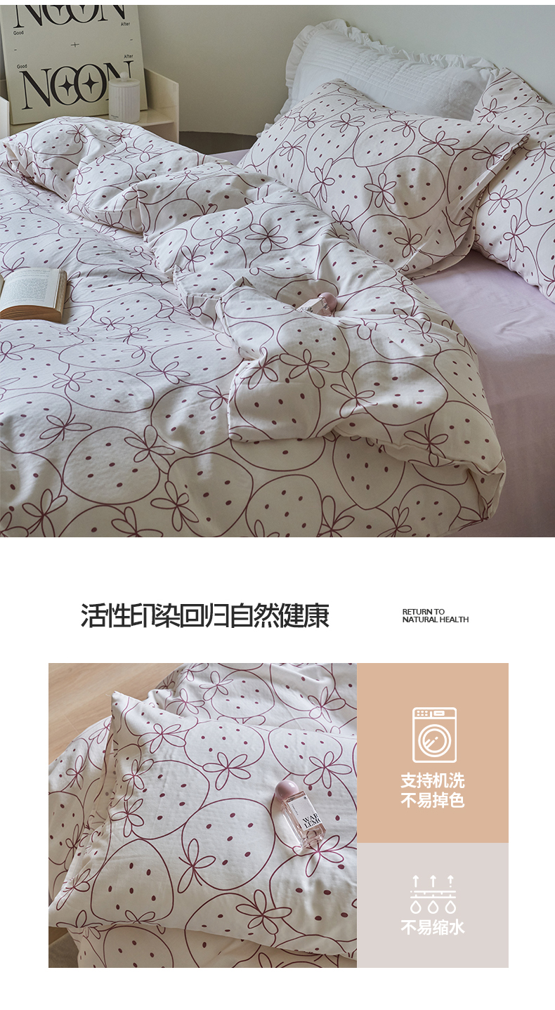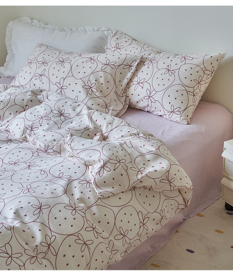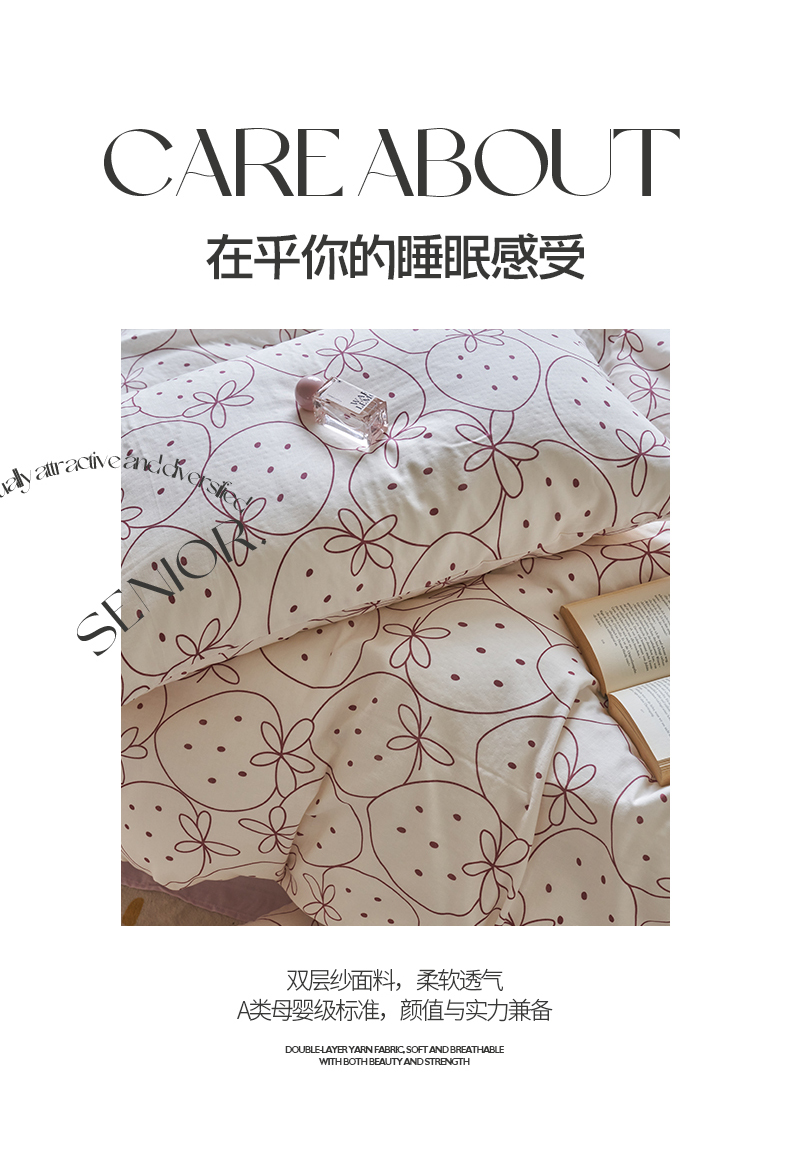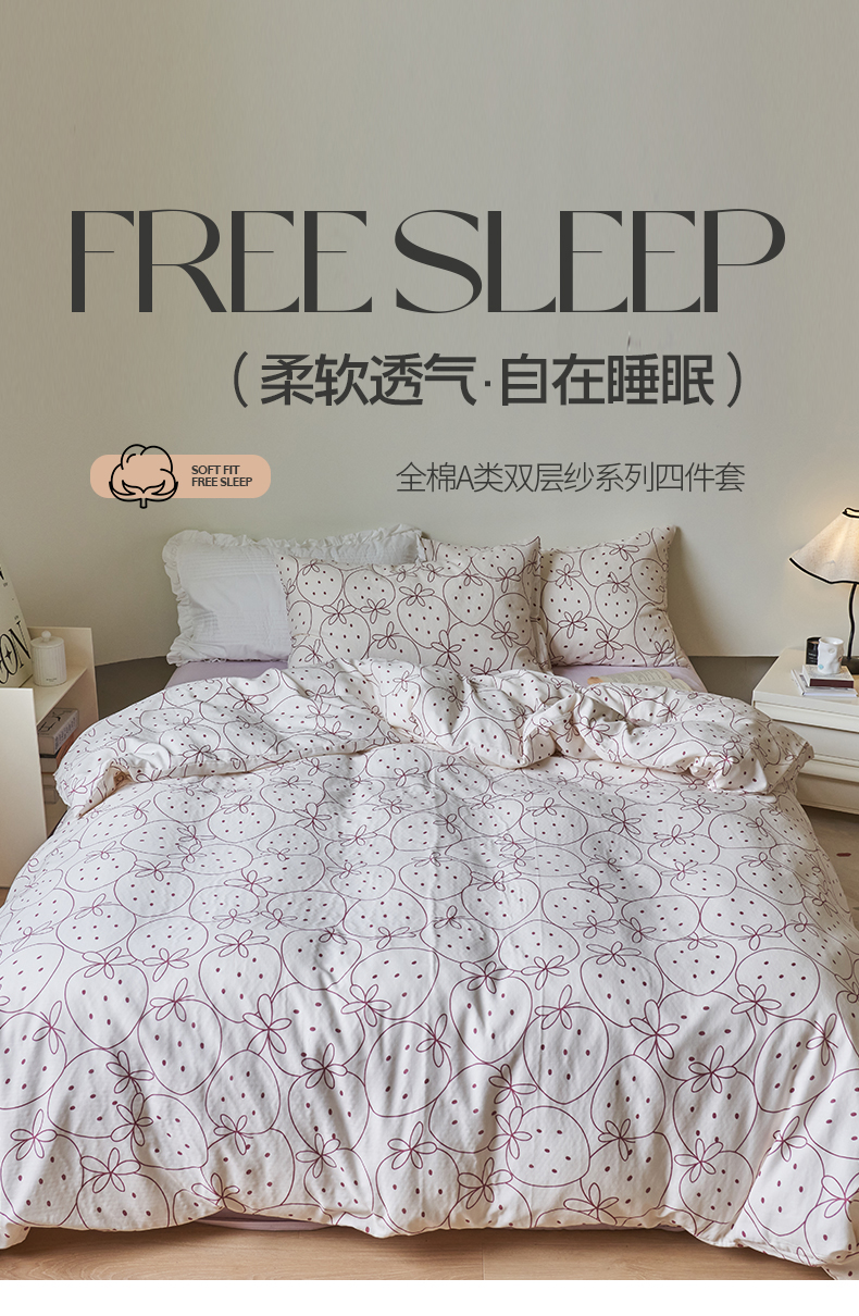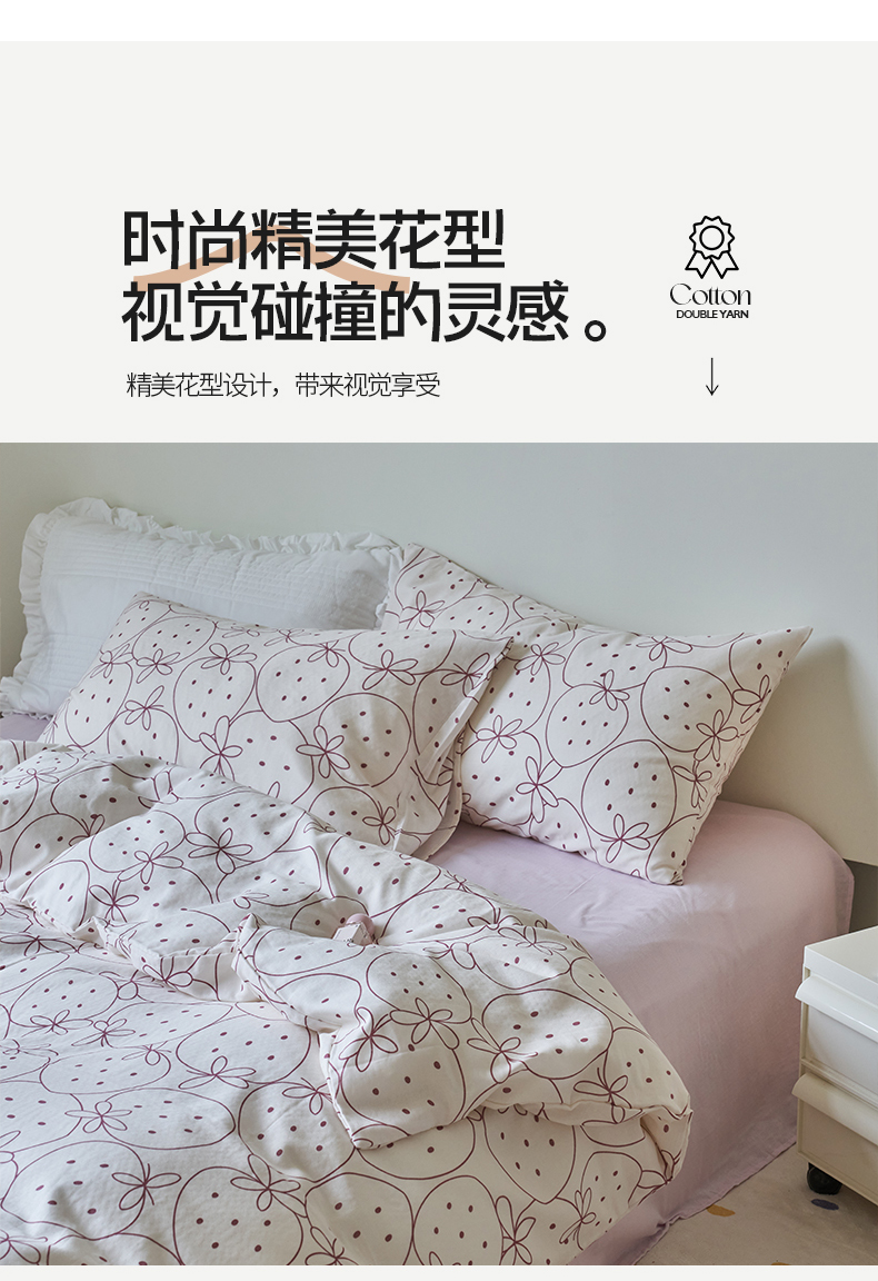 当前位置: 91家纺网 > 商品网购 > 床品套件 > 四件套 > 全棉普通四件套 > 窝米 2023秋季新品全棉双层纱四件套系列 大草莓