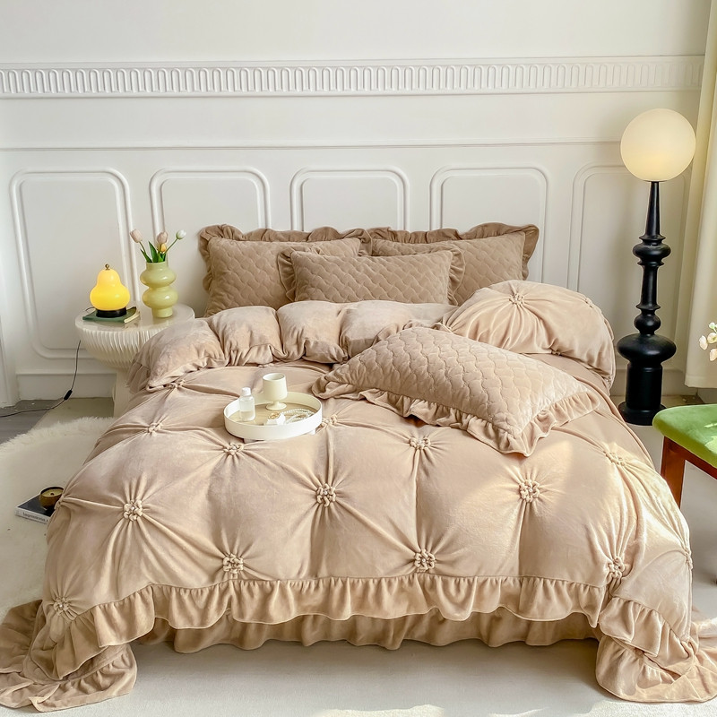 商品名称:上喜 热卖牛奶绒珍珠床盖款三件套四件套 浅咖色