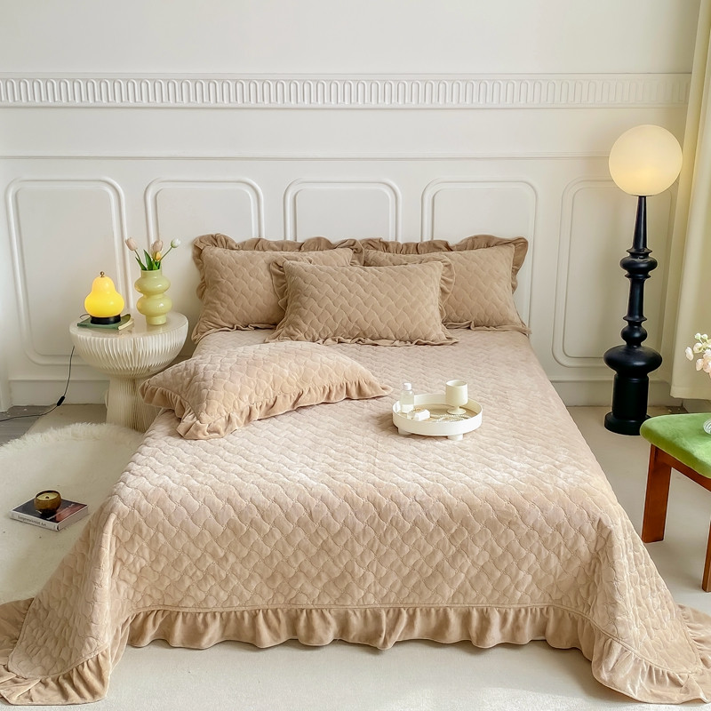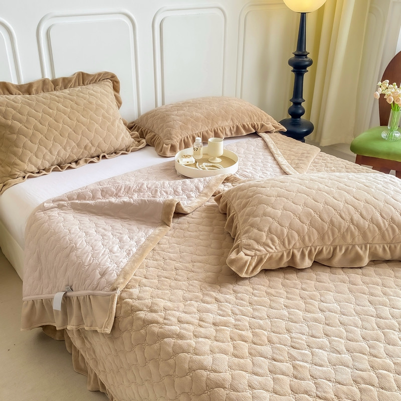 上喜 热卖牛奶绒珍珠床盖款三件套四件套 浅咖色