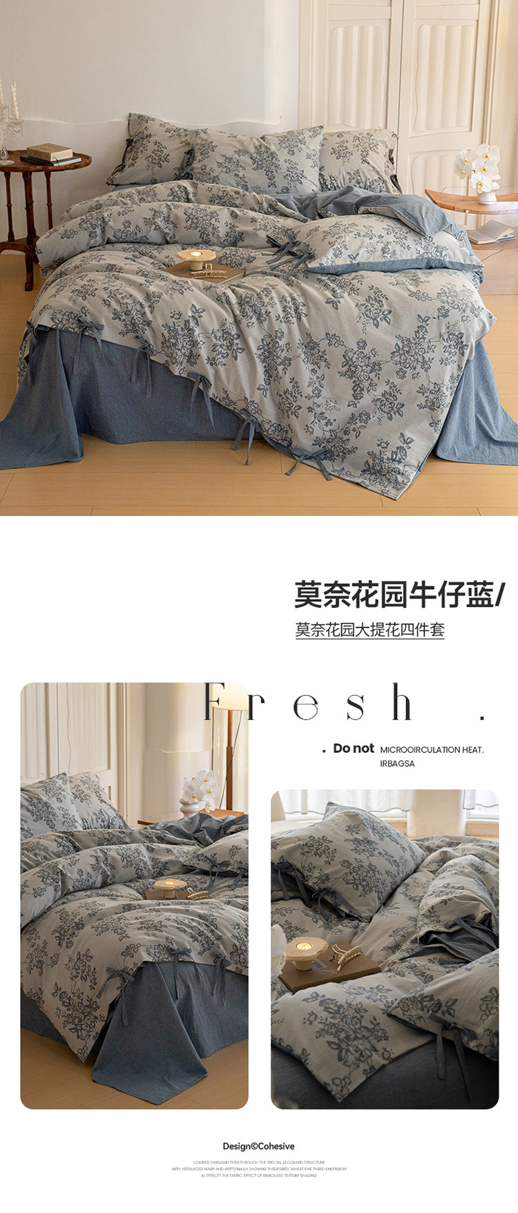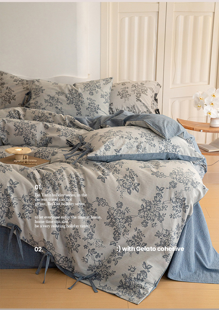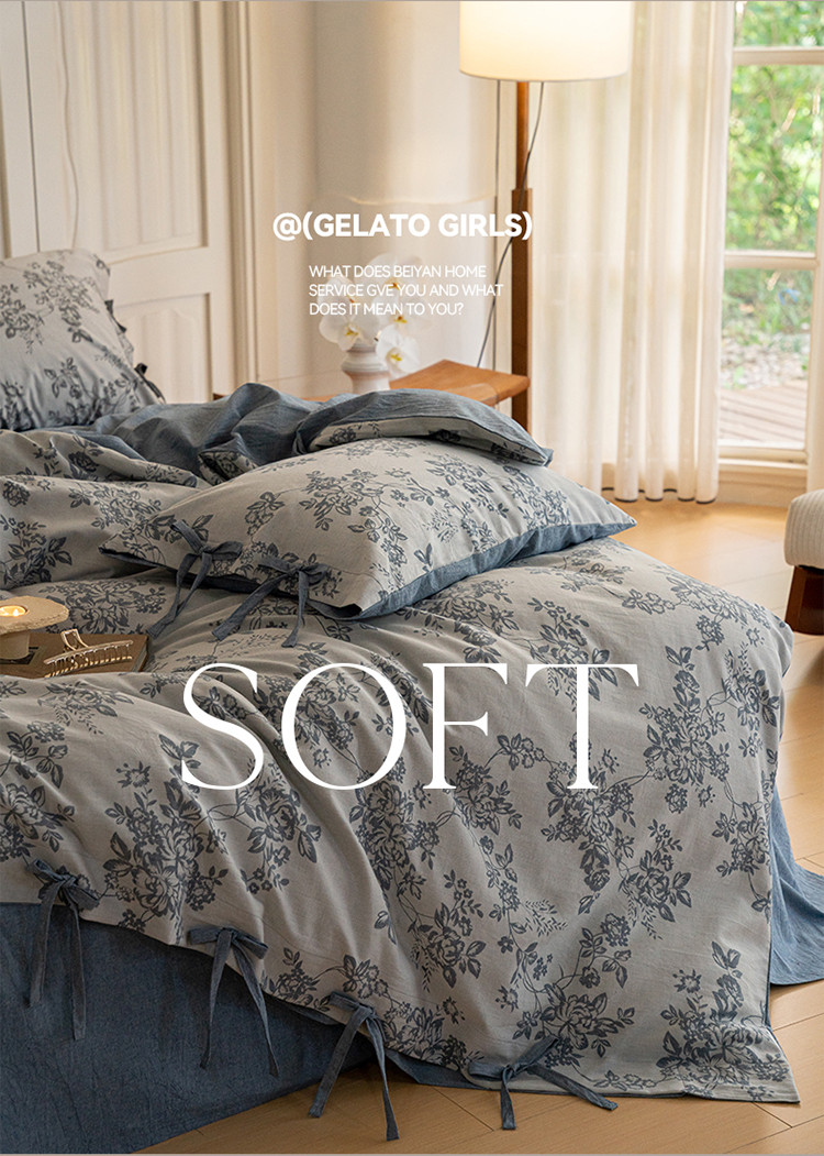 商品名称:华超针织 2024新款莫奈花园大提花四件套 莫奈花园牛仔蓝