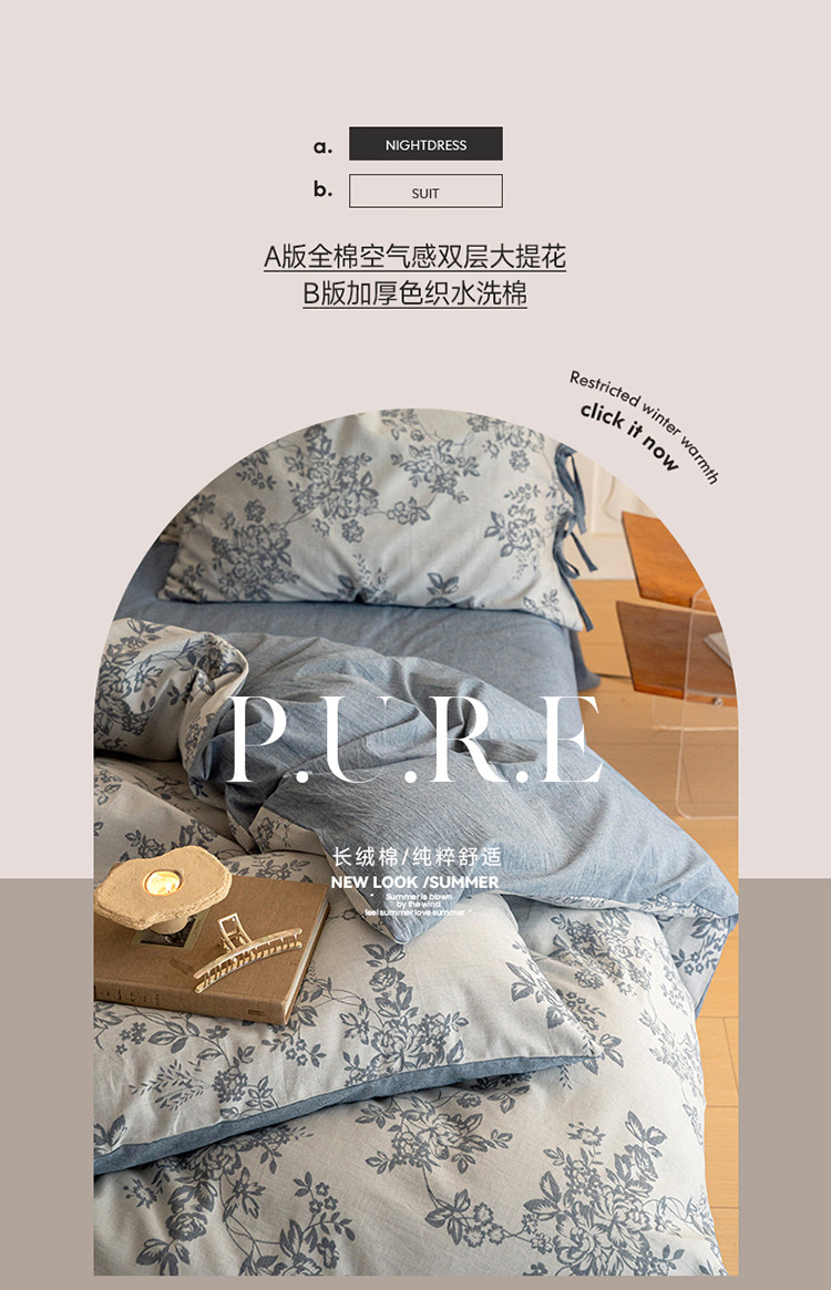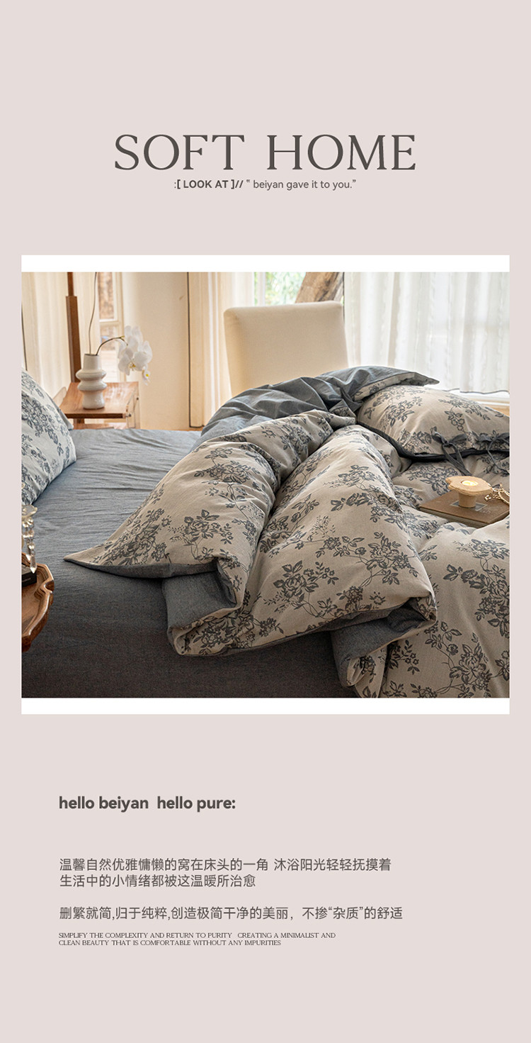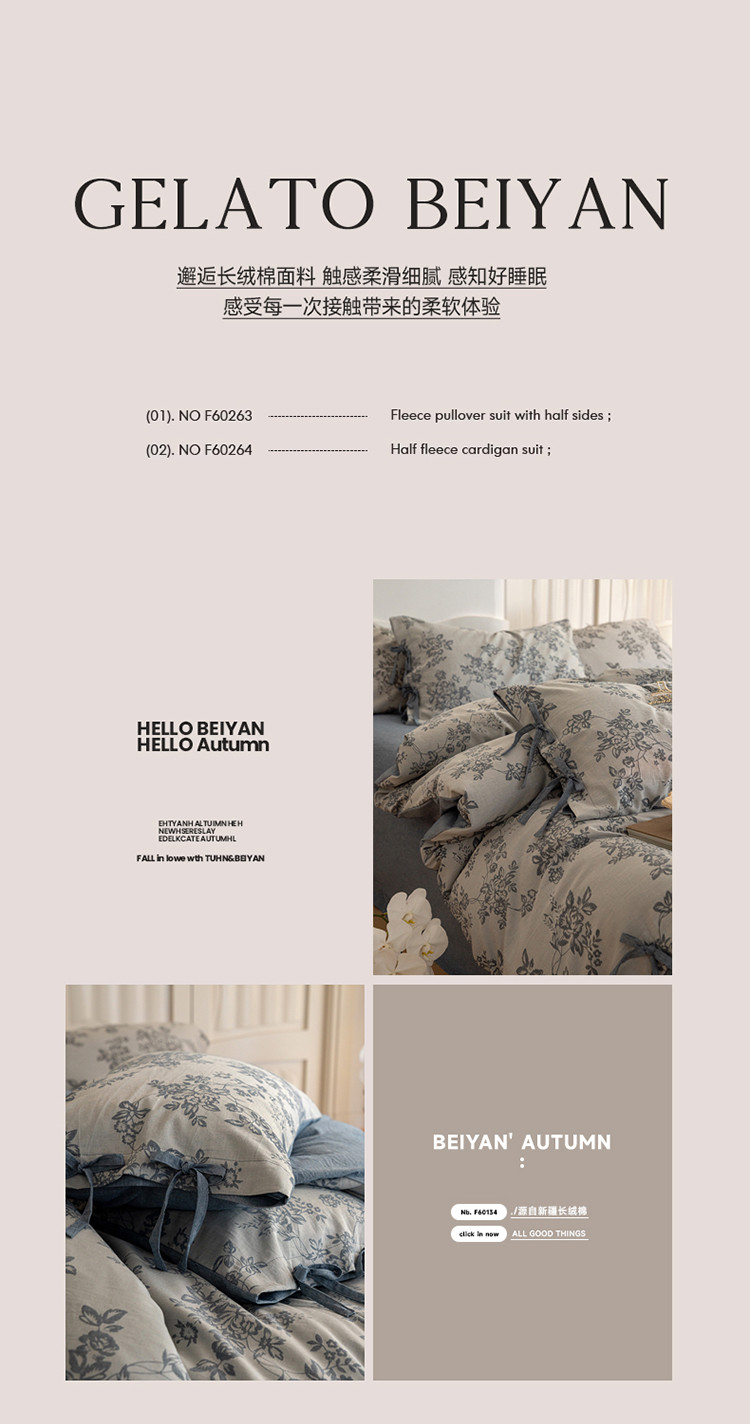 (总)华超针织 2025新款亲肤舒适全棉纯棉针织五件套四件套,奶糖+樱桃,杏粉+花田,杏灰+玫瑰