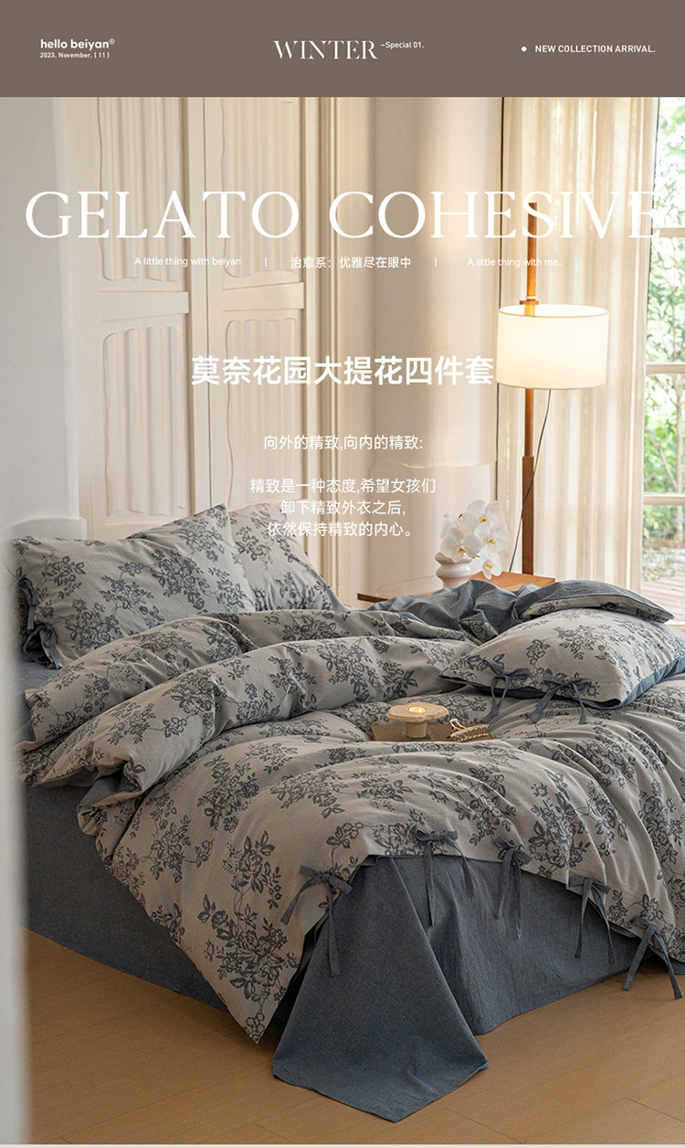 华超针织 2024新款莫奈花园大提花四件套 莫奈花园牛仔蓝
