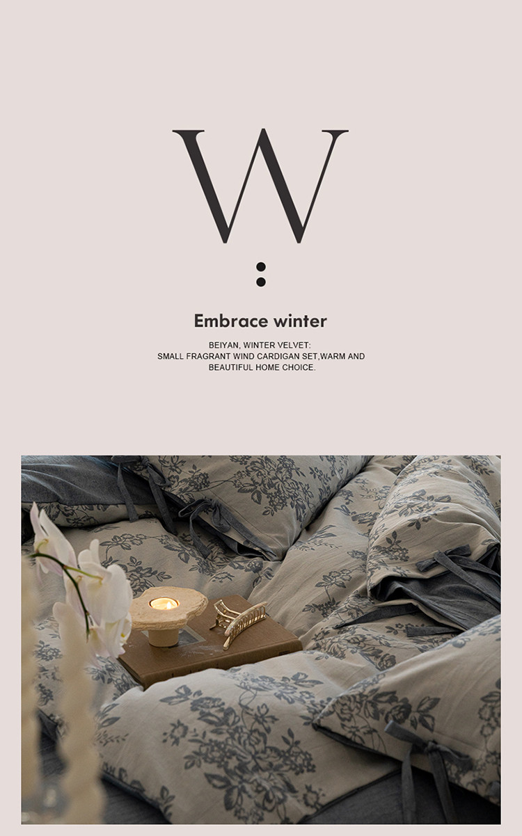 (总)华超针织 2025新款宝宝绒密拷边刺绣四件套 (会员-20),初樱琥珀,初樱粉黛