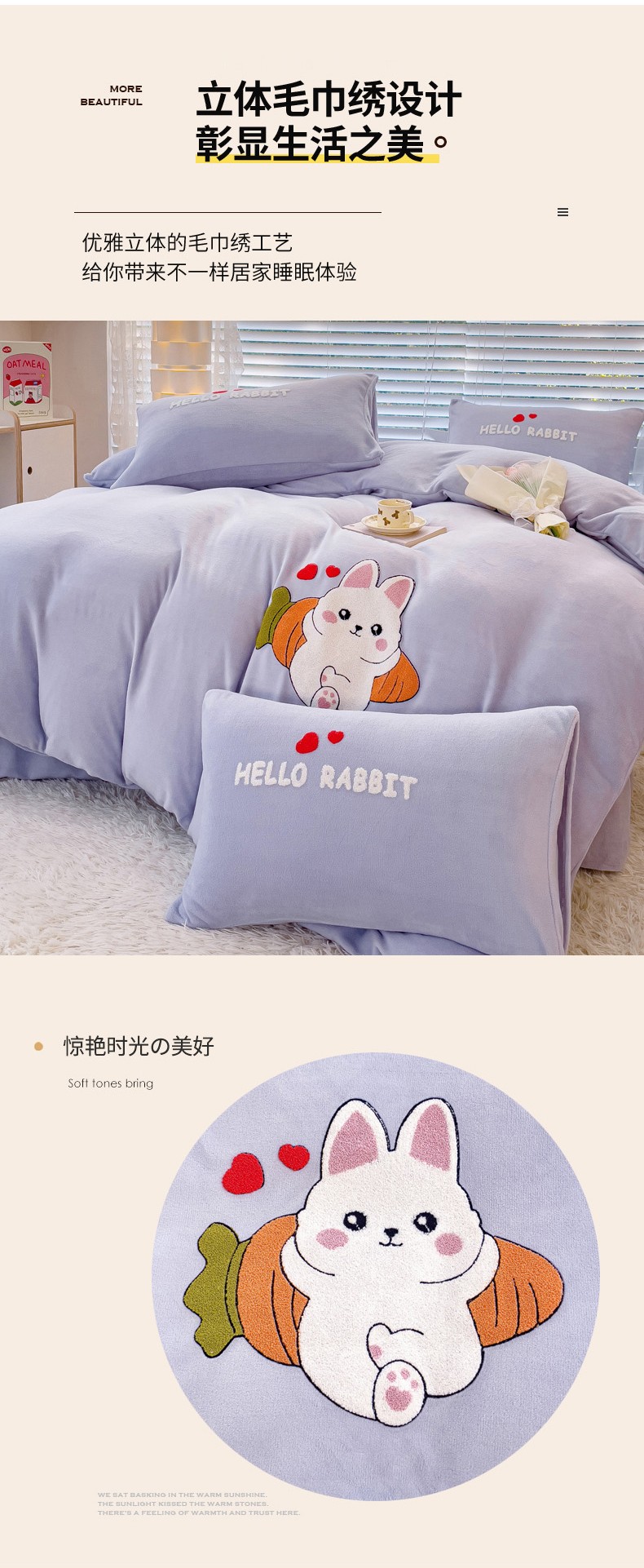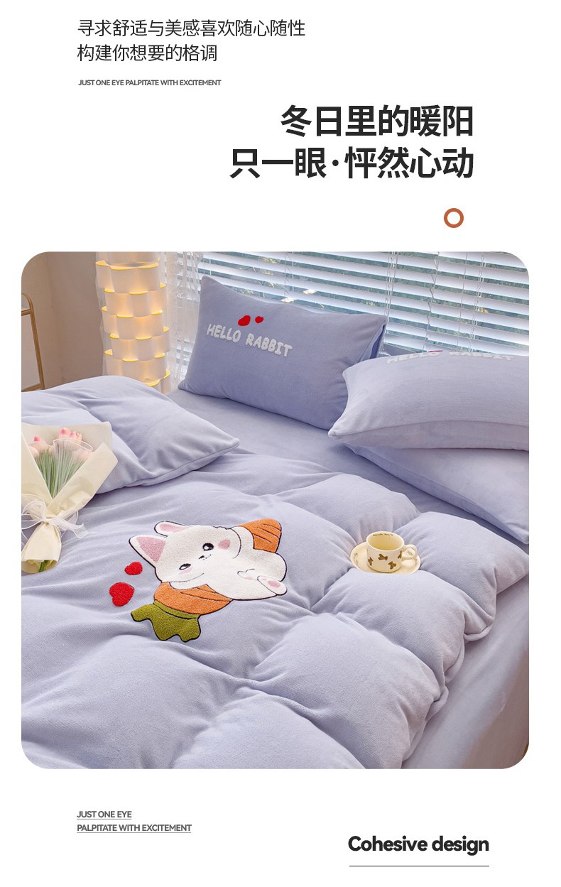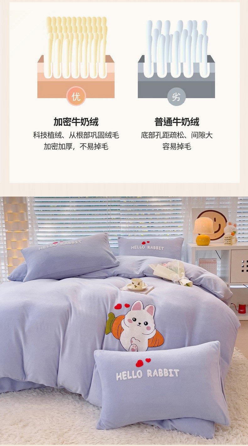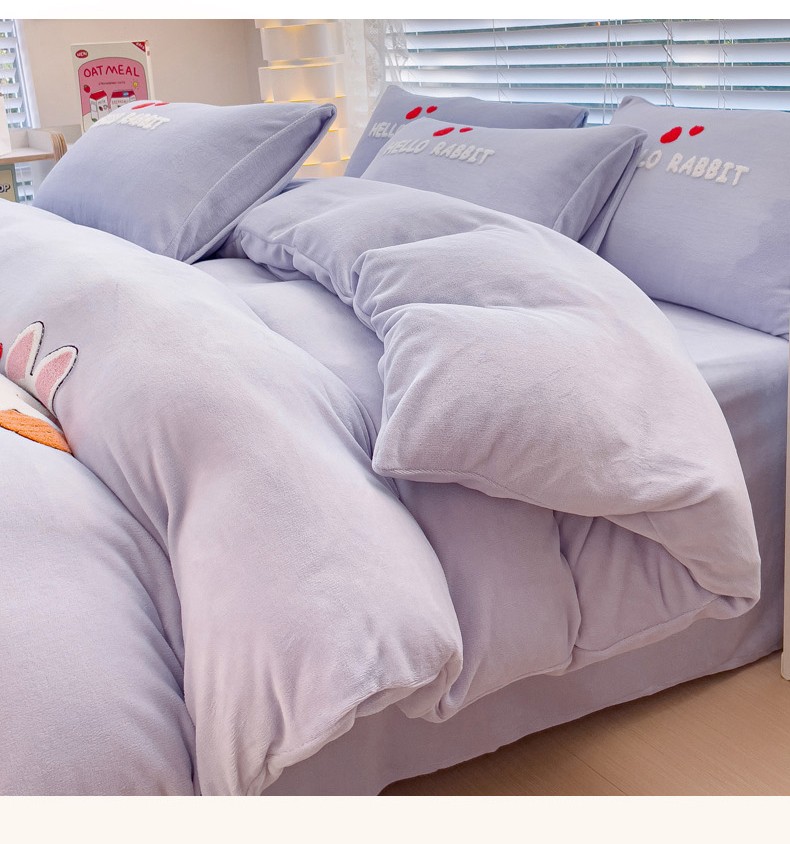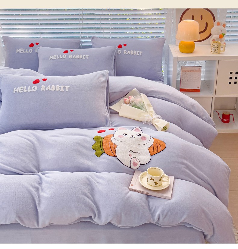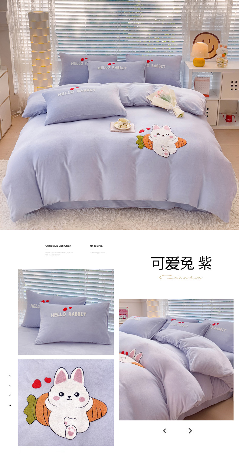 商品名称:菲儿家纺 2023新款牛奶绒毛巾绣四件套 可爱兔-紫