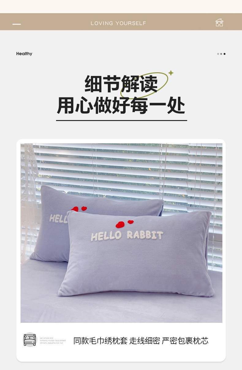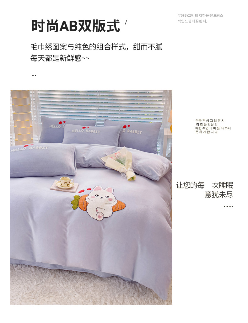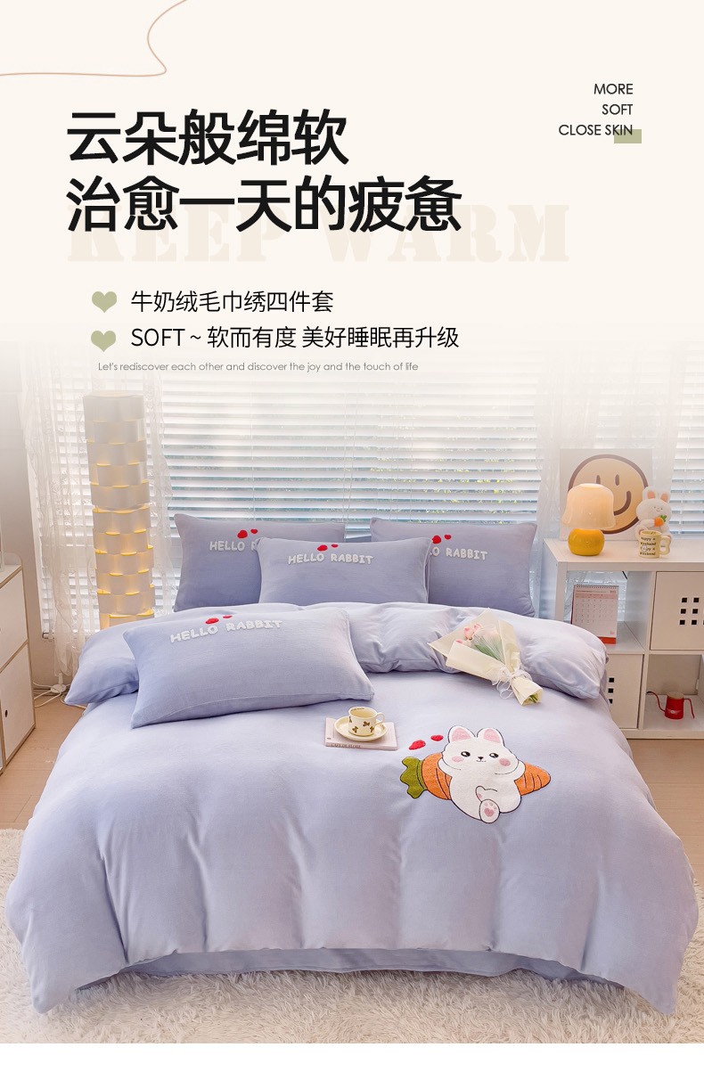 菲儿家纺 2023新款牛奶绒毛巾绣四件套 可爱兔-紫
